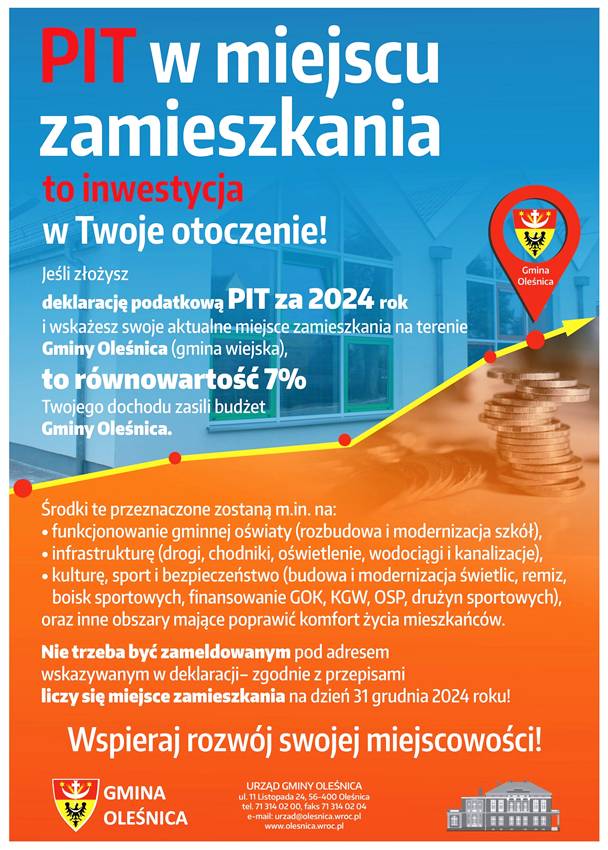 – Chciałbym, aby każdy mieszkaniec miał świadomość, że wspólnymi siłami możemy osiągnąć więcej – podkreśla. – Im więcej osób zadeklaruje w PIT swoje miejsce zamieszkania w gminie Oleśnica (gmina wiejska), tym większe będą nasze możliwości finansowe. Aktualizowanie danych w deklaracjach PIT zapewnia, że podatki wypracowane przez mieszkańców trafiają do budżetu gminy, z którego realizowane są zadania służące lokalnej społeczności.