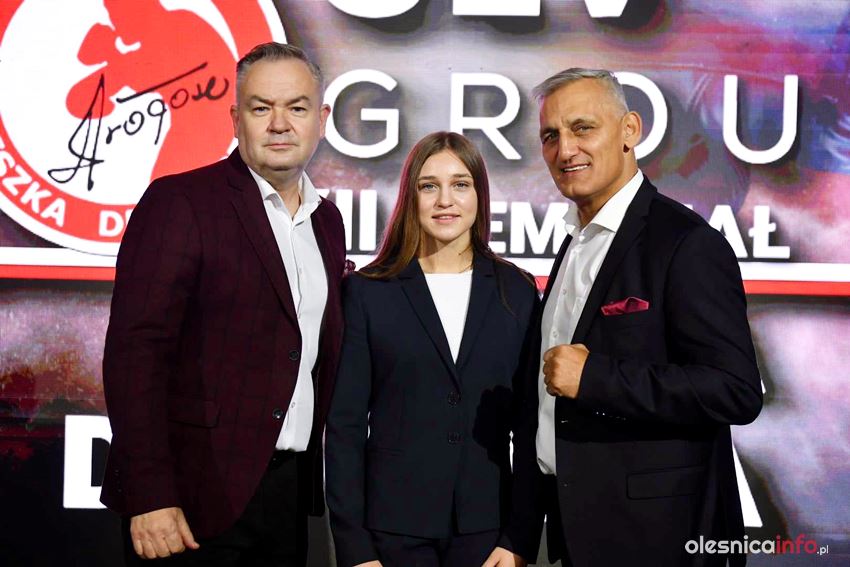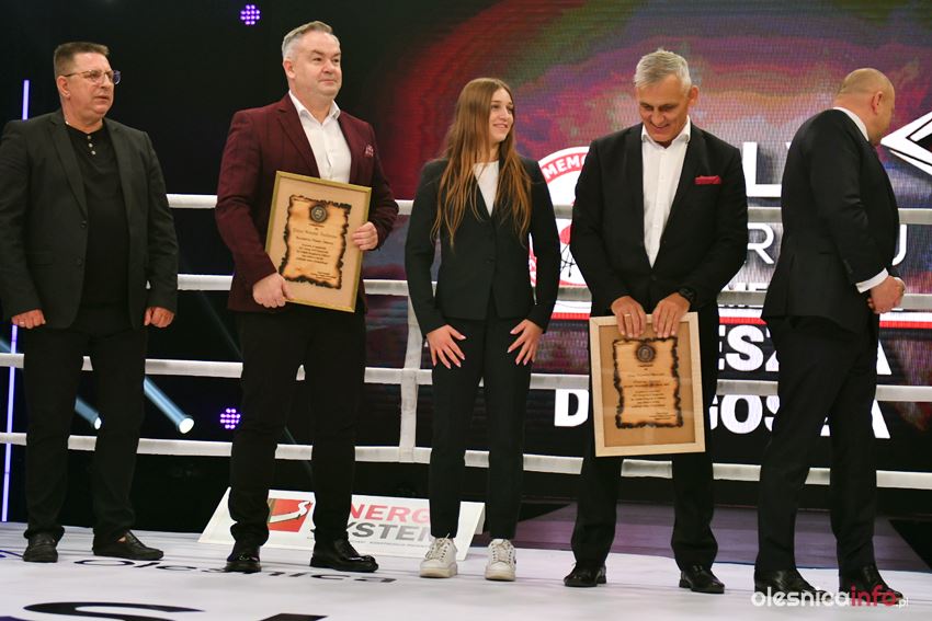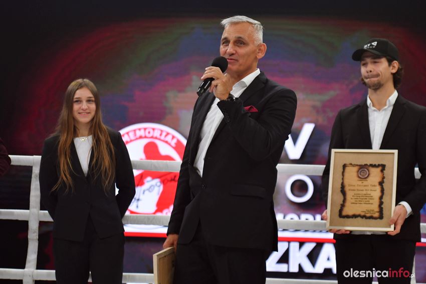 Później na ringu pojawiła się Julia Szeremeta. – Bardzo się cieszę, że zostałam zaproszona na ten memoriał, cieszę się że mogę być w Oleśnicy pierwszy raz u trenera (Bartnika) i życzę super pojedynków – powiedziała wicemistrzyni olimpijska z Paryża.