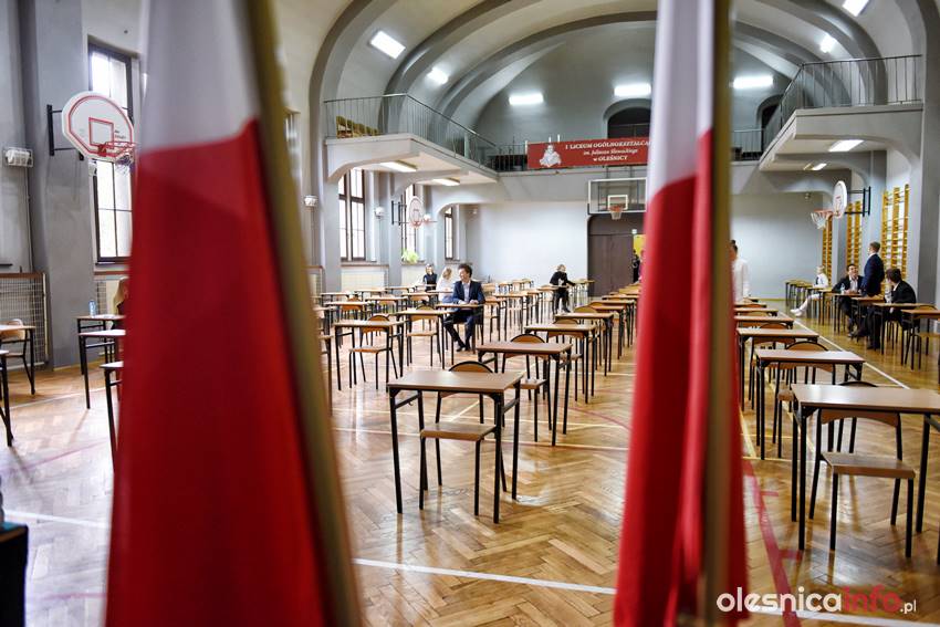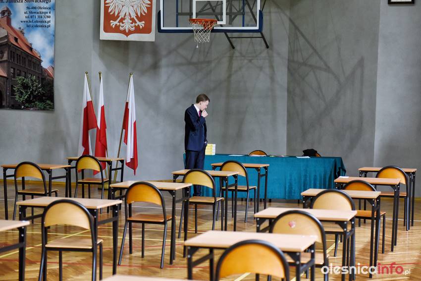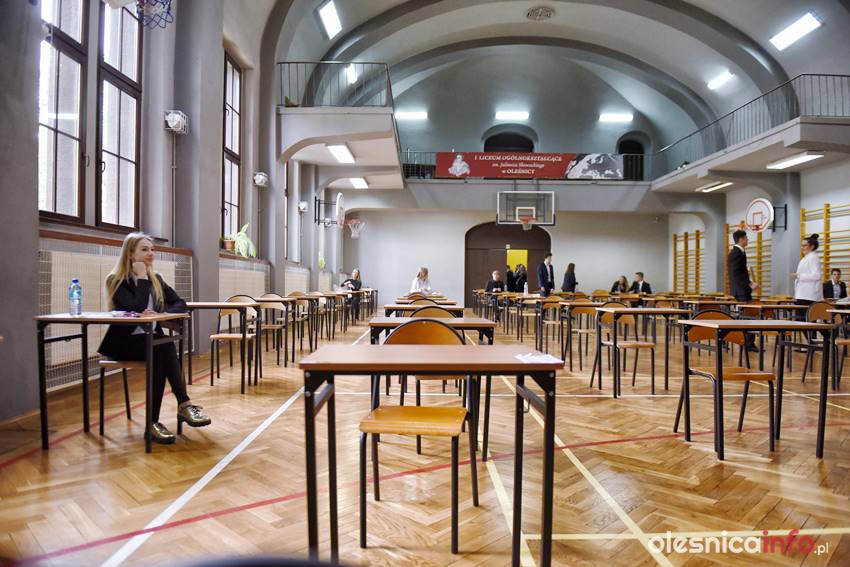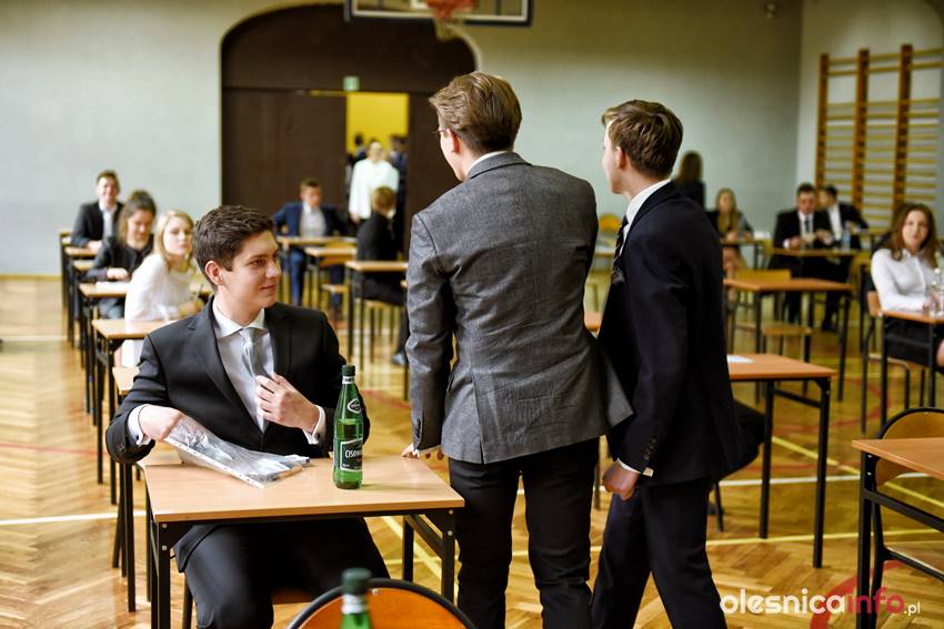 Później kolejno zajmowali wyznaczone miejsca. Egzamin rozpoczął się punktualnie. W powiecie oleśnickim piszą go uczniowie w I i II LO w Oleśnicy, ZSP w Oleśnicy, ZSP w Bierutowie oraz w ZSP w Międzyborzu, Twardogórze i Sycowie, a także w LO w Sycowie.