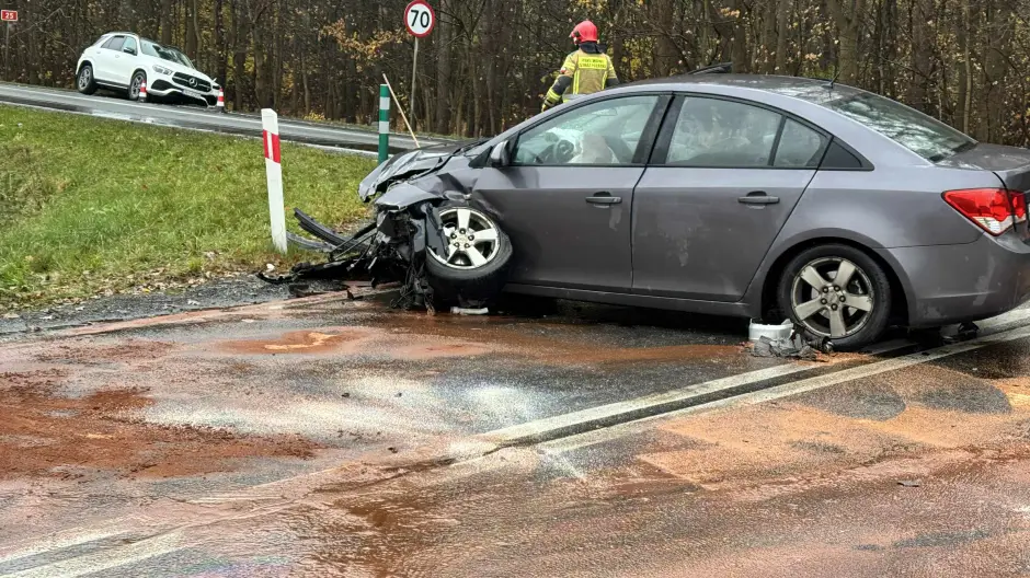Do groźnie wyglądającego zdarzenia drogowego doszło dzisiaj na drodze krajowej nr 25 na wysokości Sokołowic. Ze wstępnych informacji wynika, kierowca mercedesa podjął niebezpieczny manewr wyprzedzania na podwójnej linii ciągłej. W tym samym czasie z drogi podporządkowanej wyjeżdżał drugi samochód. Doszło do zderzenia.
