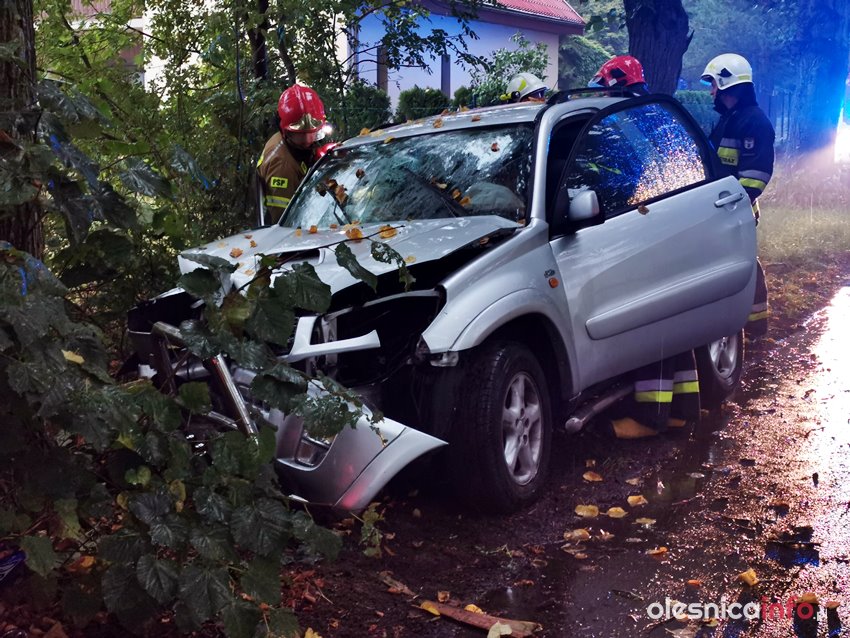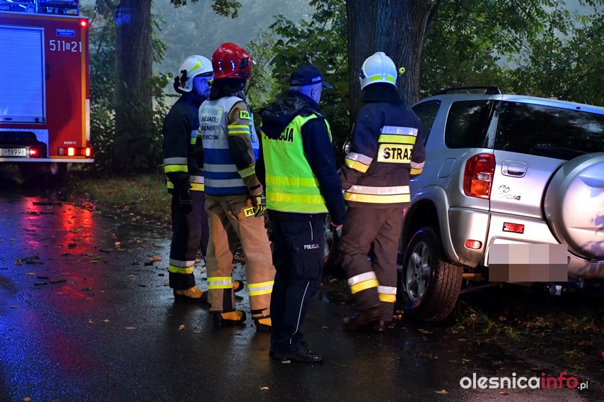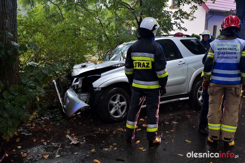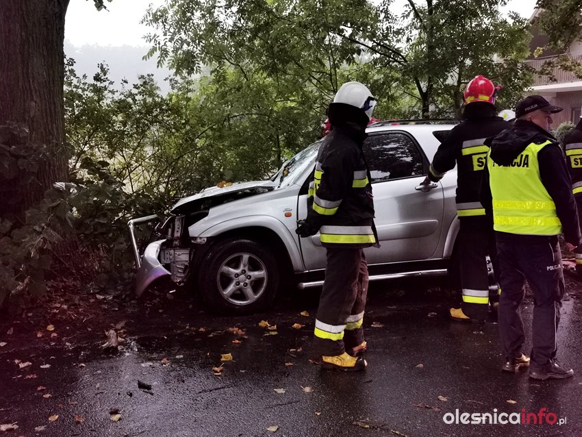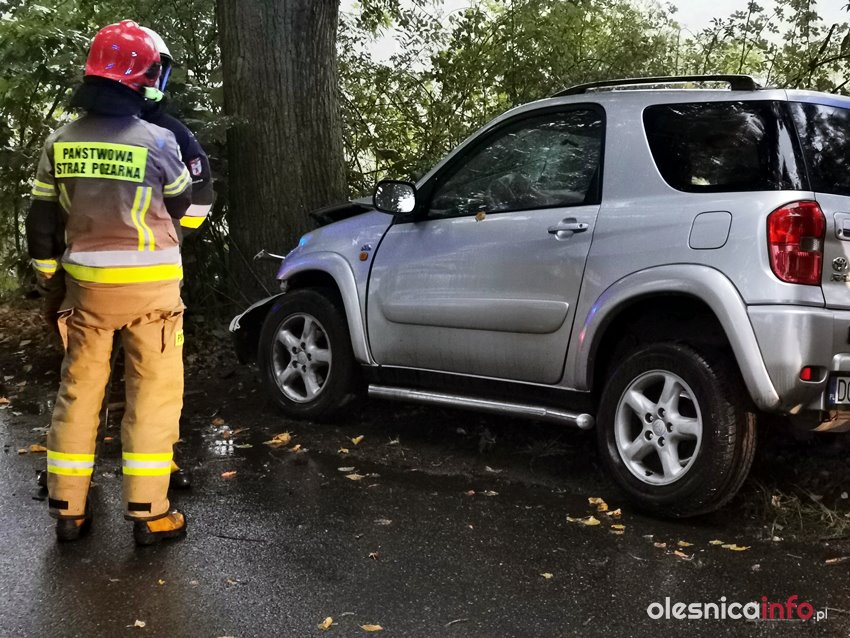 Wiadomo, że to toyota RAW 4 na łuku drogi tuż za zakrętem uderzyła w drzewo. Jedna osoba jest poszkodowana. To pasażerka podróżująca toyotą. Na miejsce wezwano wszystkie służby.