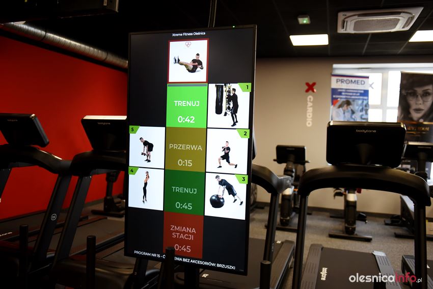 Nowa siłownia to zarówno nowoczesne urządzenia do ćwiczeń, jak i sala do zajęć fitness. Gama ćwiczeń jest bardzo szeroka. Od zumby, pilatesu czy jogi po flow body, mobility, brazylijskie pośladki czy bikini cardio, bikini shape i twerk, czyli taniec pośladów. Wszystkie zajęcia prowadzą certyfikowani Instruktorzy. Będzie też 10XTraining, do którego mamy specjalnie przygotowaną ściankę z monitorami, na których będzie się pojawiać informacja o tym, jakie ćwiczenia mamy wykonać. Jeśli więc nawet nie ma trenera, będziemy w stanie samodzielnie przejść cały cykl ćwiczeń.