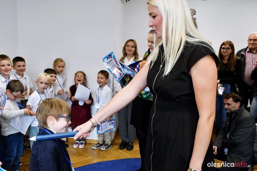Najmłodsi uczniowie byli pięknie przygotowani. Przed zgromadzonymi w szkolnej sali rodzicami i dziadkami recytowali wierszyki i śpiewali piosenki. Później przyszedł czas na najważniejszą część uroczystości. Dzieci złożyły ślubowanie odczytane przez wicedyrektorkę szkoły Marlenę Kubacką i wzięły udział w pasowaniu. Aktu tego dokonały wraz z panią wicedyrektor nauczycielki Kamila Stępień, Agnieszka Tobiasz i Bogumiła Wittenbeck.