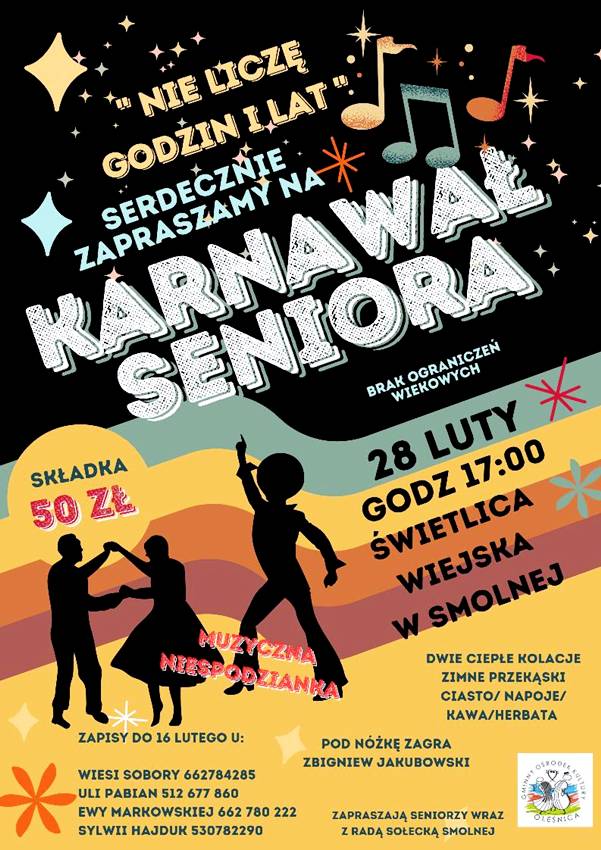 – Jest to impreza organizowana z inicjatywy seniorów dla seniorów. Nie obowiązuje tu żadna granica wiekowa. Po prostu kto ma chęć zakończyć karnawał w doborowym towarzystwie i przy dobrej muzyczce ” z tamtych lat ” to seniorzy wraz z radą sołecką serdecznie zapraszają – informują organizatorzy.