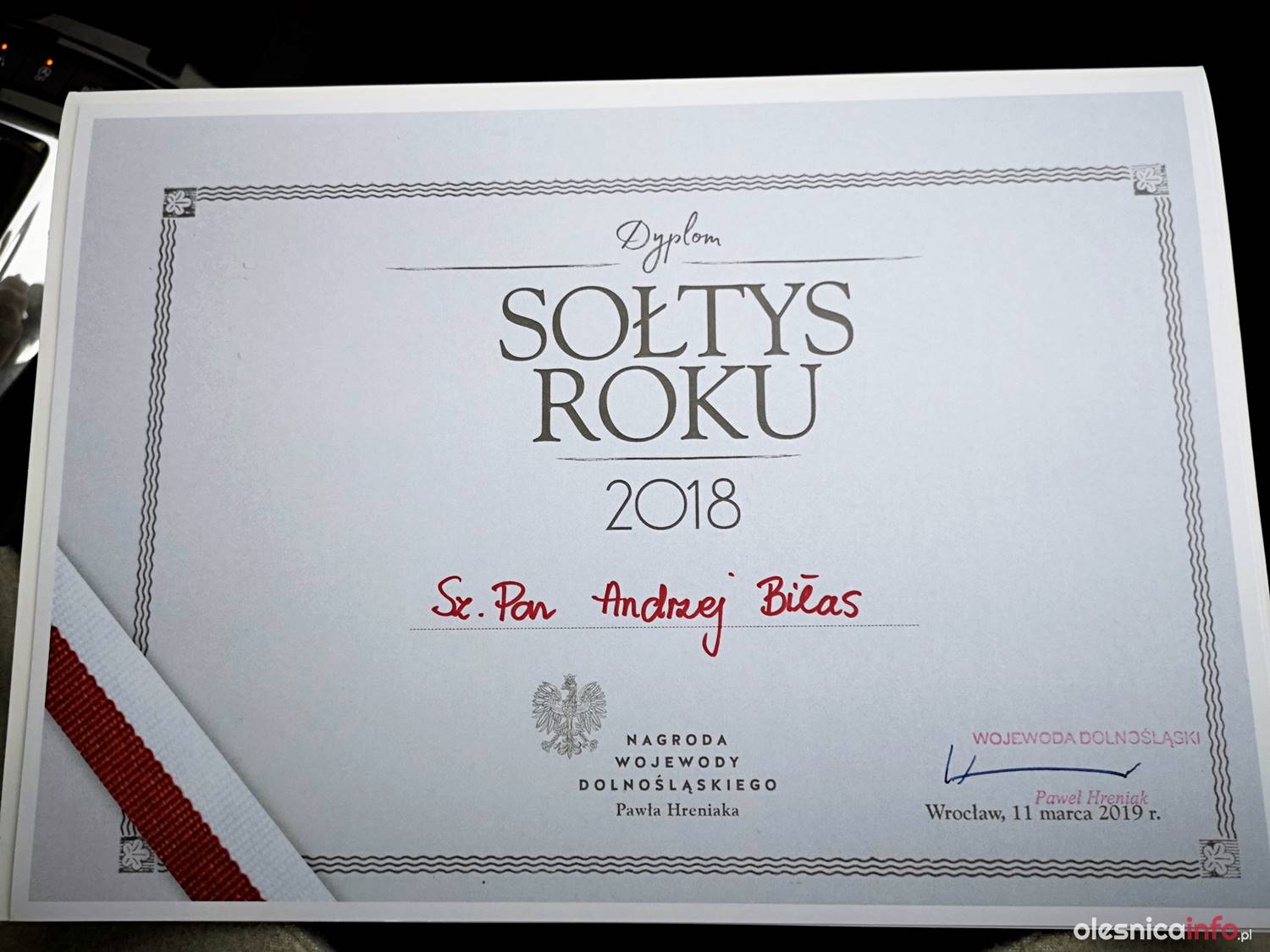 Sołtysi z gminy Dobroszyce na gali we Wrocławiu