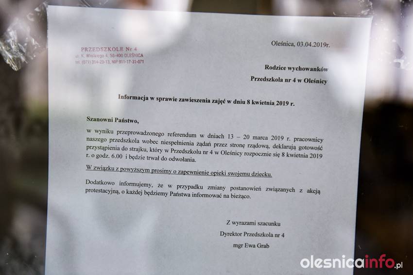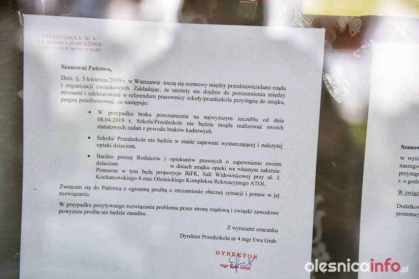 Jak długo potrwa strajk? Na to pytanie dzisiaj nikt nie był w stanie nam odpowiedzieć. Wiadomo, że protest będzie kontynuowany także we wtorek. Dyrektorzy szkół już wysyłają taką informację do uczniów i rodziców. Bogusława Marciniak, szefowa ZNP, odwiedzała dzisiaj strajkujące placówki. – Mam ich aż 25. Przyglądam się sytuacji, jaka w nich panuje – powiedziała OleśnicaInfo.pl