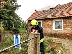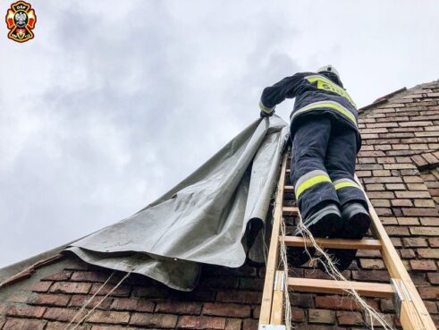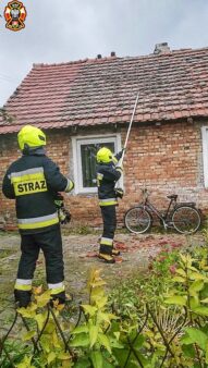 – Podjęta została decyzja o strąceniu zagrażających elementów przy użyciu bosaka a następnie zabezpieczeniu uszkodzonego dachu plandeką. We współpracy z właścicielem budynku dach został zabezpieczony – informowali miejscowi ochotnicy.