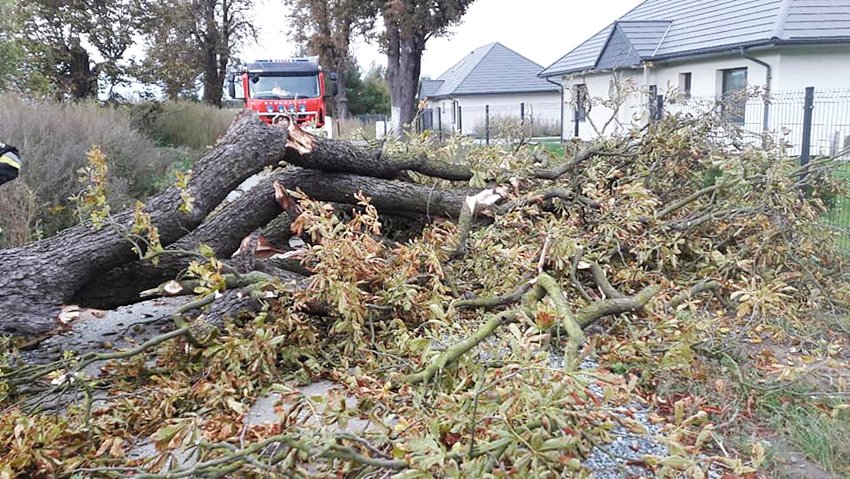 – Ogółem odnotowaliśmy zdarzeń 38, w tym 35 związanych z połamanymi drzewami oraz nadłamanymi konarami drzew, dwa zdarzenia to uszkodzone dachy. Jedno dotyczyło małego kotka, który wszedł na drzewo i nie potrafił z niego zejść – wylicza Marcin Purzyński z Powiatowej Komendy Straży Pożarnej.