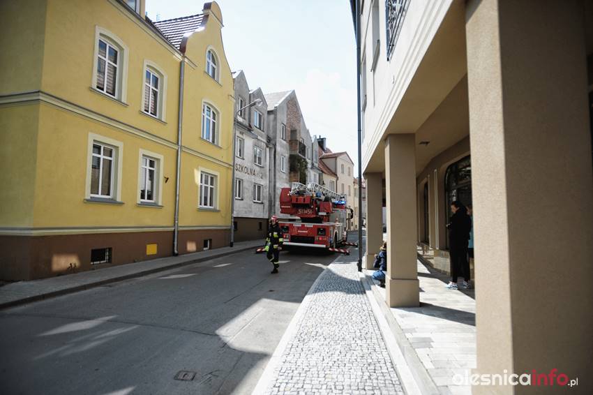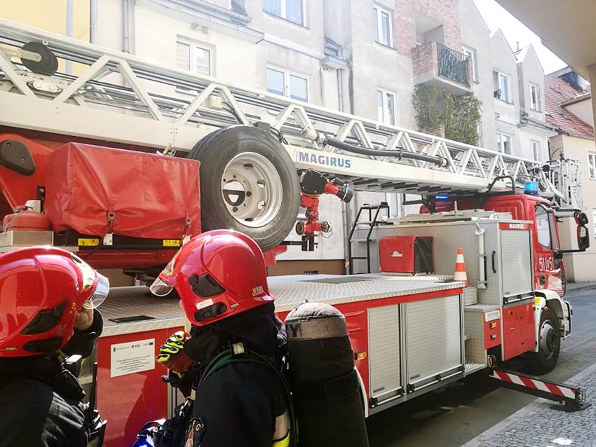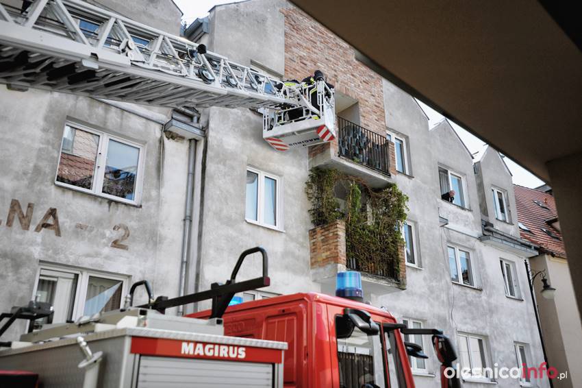 Na miejsce wezwano samochód z drabiną, po której strażacy dostali się do mieszkania.