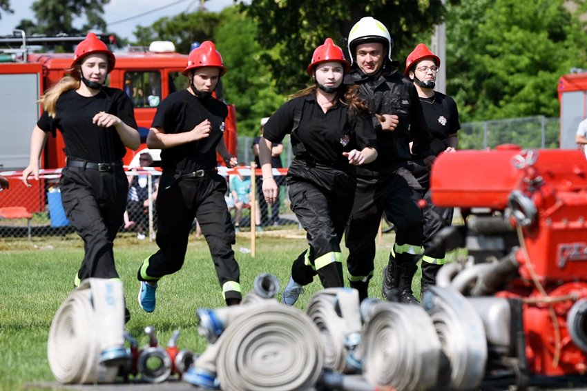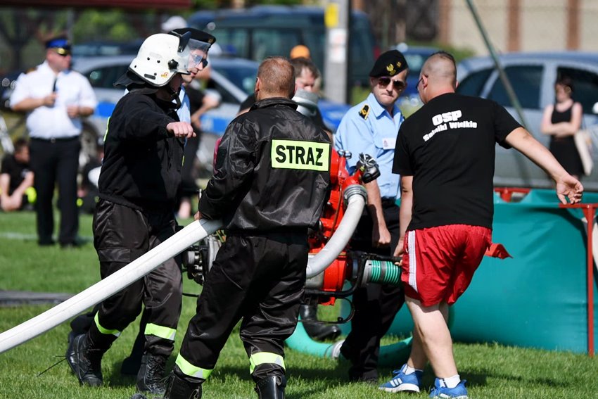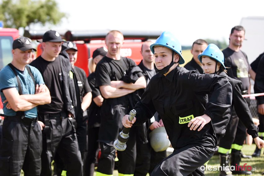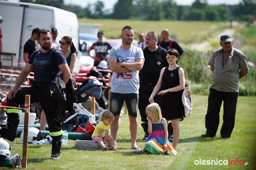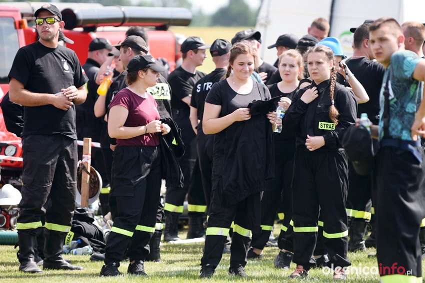Swoich przedstawicieli na zawodach mają strażaczki-ochotniczki. Dwie drużyny żeńskie wystawiły jednostki ze Zbytowej i Posadowic. Jeszcze przed rozpoczęciem zawodów powodzenia życzyli strażakom burmistrz Piotr Sawicki oraz zastępca komendanta powiatowego Łukasz Słoma. Strażacy biorą udział w kilku konkurencjach mających ocenić ich umiejętności. Na czele komisji stanął Bartosz Sztuka z powiatowej komendy w Oleśnicy.