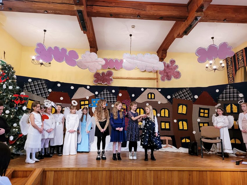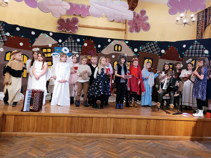 Wydarzenie to swoimi występami uświetnili zaproszeni goście: Zespół ludowy „Uśmiech”, uczniowie „Muzycznego Zakątka” wraz z Anną Mulowską-Plaskotą, uczniowie klasy II a SP w Dobroszycach, przygotowani przez Justynę Kochańską-Tułę oraz Martę Papis. Nie zabrakło również Warsztatu Terapii Zajęciowej Caritas w Dobroszycach. Klasa IIa zaprezentowała jasełka pt. „Święta Noc”. Licznie zgromadzona publiczność chętnie włączyła się do śpiewu kolęd.