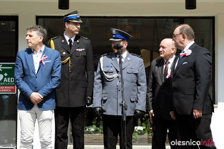W części oficjalnej wzięli udział przedstawiciele władz miasta i powiatu oraz żołnierze, policjanci i Służba Więzienna. Był hymn państwowy, defilada oraz rozdawanie flag państwowych i miejskich. Okolicznościowe przemówienie wygłosił burmistrz Jan Bronś.
