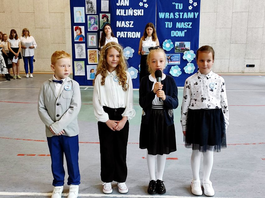 Tego dnia przy tablicach upamiętniających patrona Jana Kilińskiego zostały złożone kwiaty, a uczennice klas piątych przypomniały najważniejsze fakty z życia patrona.