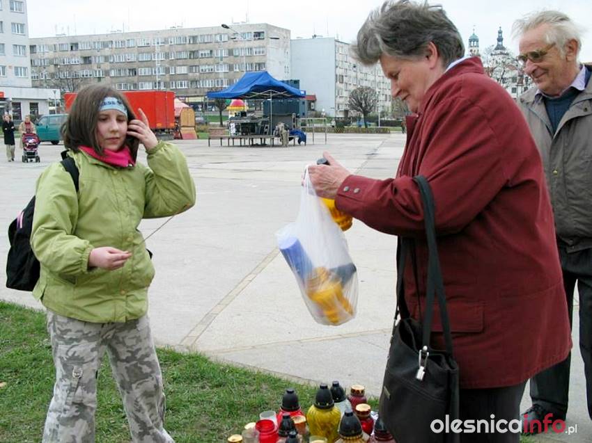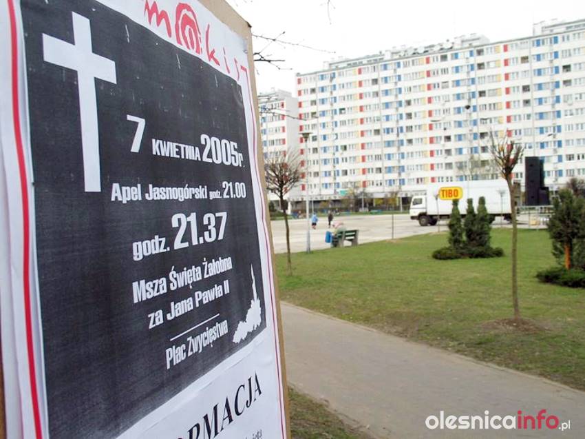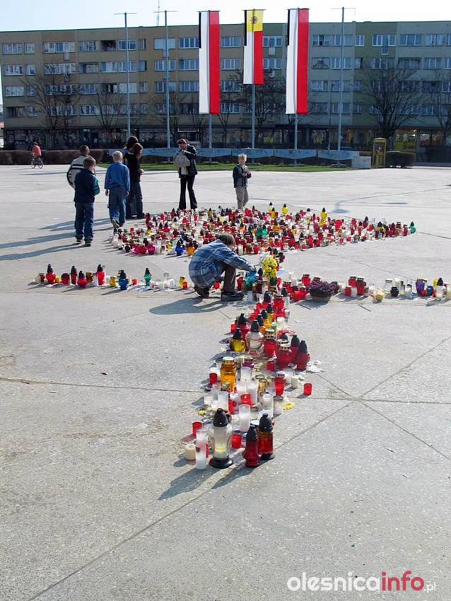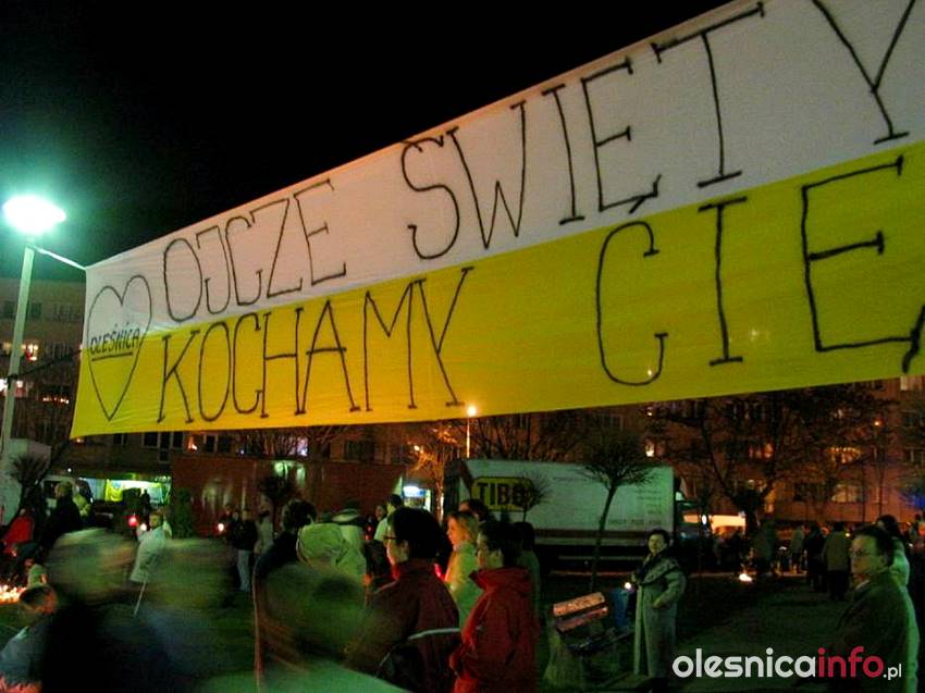 Kiedy w kwietniu 2005 roku zmarł Jan Paweł II oleśniczanie dawali wyraz swojej głębokiej wiary. Tamte wyjątkowe chwile doskonale pamięta ks. Rafał Kowalski, który chcąc upamiętnić postać papieża Polaka zdobył Giewont i umieścił na jego szczycie flagę z herbem Oleśnicy. – Ta inicjatywa zrodziła się bardzo spontanicznie – wspominał później. – Kiedy po śmierci Jana Pawła II media podały wiadomość, że na krzyżu, który stoi na Giewoncie GOPR-owcy zawiesili papieskie flagi, wspólnie z ks. Maciejem Małygą postanowiliśmy zorganizować własną pielgrzymkę. Podzieliliśmy się pomysłem z burmistrzem Oleśnicy Janem Bronsiem. Ten poprosił, byśmy zabrali ze sobą flagę z herbem miasta, a ponieważ byliśmy świadkami wspólnych spotkań modlitewnych mieszkańców na placu Zwycięstwa uznaliśmy, iż to jest dobry pomysł.