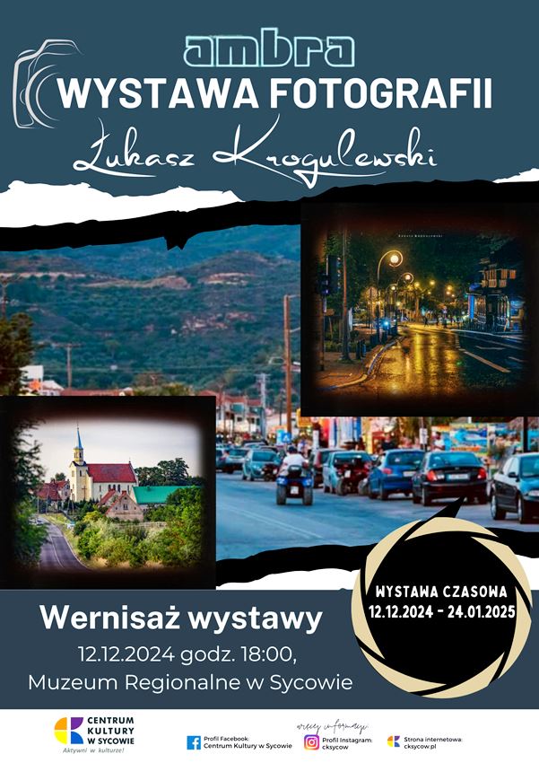 Centrum Kultury w Sycowie serdecznie zaprasza na wernisaż wystawy fotografii Łukasza Krogulewskiego.