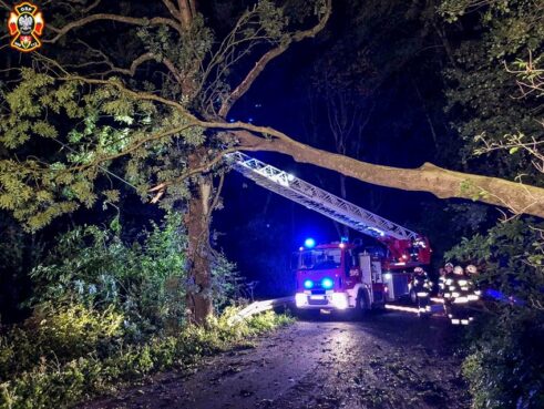 Kilka godzin później ochotnicy udali się do Brzezinki, gdzie trzeba było usunąć powalone przez wiatr drzewo. – Po dotarciu na miejsce ustalono, że doszło do wyrwania drzewa z systemem korzeniowym, wskutek czego pochyliło się ono nad drogę i oparło koroną o inne drzewo oraz prawdopodobnie linie telekomunikacyjne – informuje OSP.