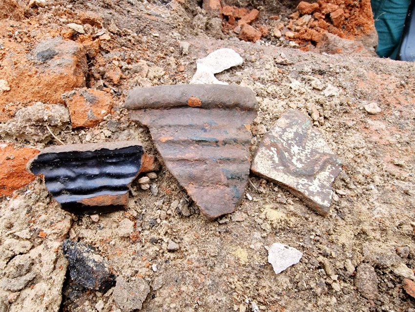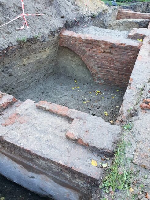 Przypomnijmy, że archeolodzy działają na zlecenie Miejskiej Gospodarki Komunalnej, która buduje sieć ciepłowniczą dla zamku. – Musieliśmy założyć wykopy sondażowe w miejscach, gdzie istnieje prawdopodobieństwo powstania kolizji z obiektami archeologicznymi – mówił nam Marcin Diakowski w rozmowie z OlesnicaInfo.pl – Wyznaczyliśmy sześć takich miejsc. Przy zachodniej ścianie zamku nie natknęliśmy się na nic interesującego. Nie natknęliśmy się też na razie na pozostałości tzw. starego browaru, który jest widoczny na rycinach Wernera. Są natomiast pozostałości tzw. młodszego browaru, który jest uwidoczniony na zdjęciach, a który w latach 70. został rozebrany. Znaleźliśmy tam pozostałości charakterystyczne dla browaru, a więc fragmenty butelek po piwie produkowanym w tym browarze oraz naczynia ceramiczne.
