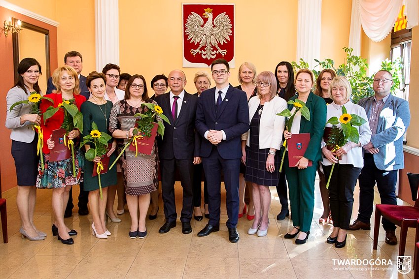 Z rąk burmistrza, a także z rąk Wiceprzewodniczącego Rady Miejskiej Jerzego Chrzana oraz Przewodniczącego Komisji Oświaty, Kultury, Sportu i Spraw Społecznych Mirosława Adamczyka – nagrody, życzenia oraz kwiaty otrzymali: Dorota Siemaszko-Babij, Maria Lidia Gerus, Renata Gąsior, Halina Ślusarek – ze Szkoły Podstawowej nr 2 w Twardogórze; Iwona Palko, Agata Jesionka i Alicja Wesołowska – z Miejskiego Przedszkola w Twardogórze; Zofia Jelonek i Waldemar Pelc – ze Szkoły Podstawowej w Goszczu; Agata Nikolin-Mrowicka, Bożena Choła-Boruszkowska i Anna Dżugaj – ze Szkoły Podstawowej w Grabownie Wielkim.