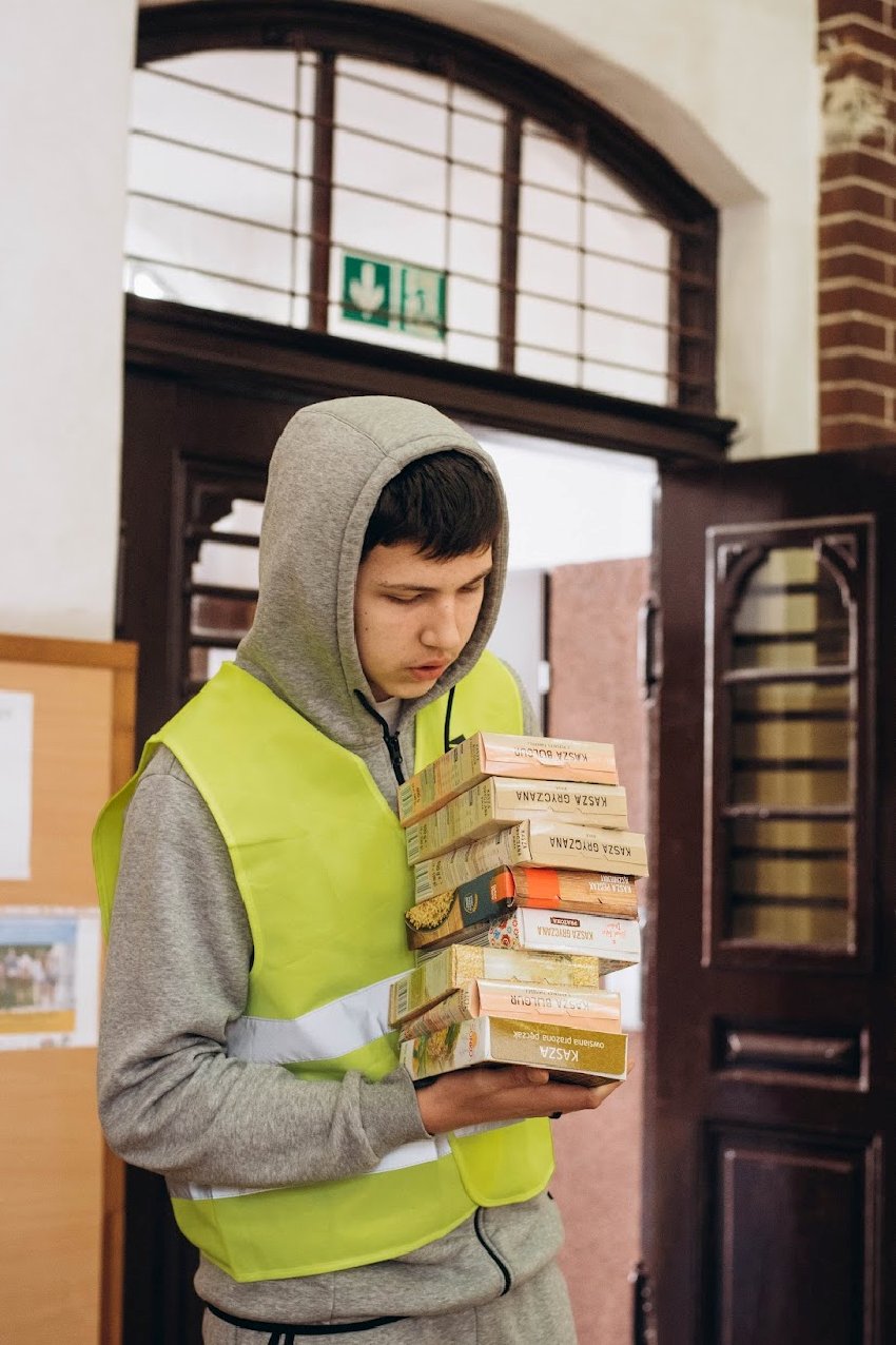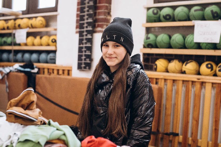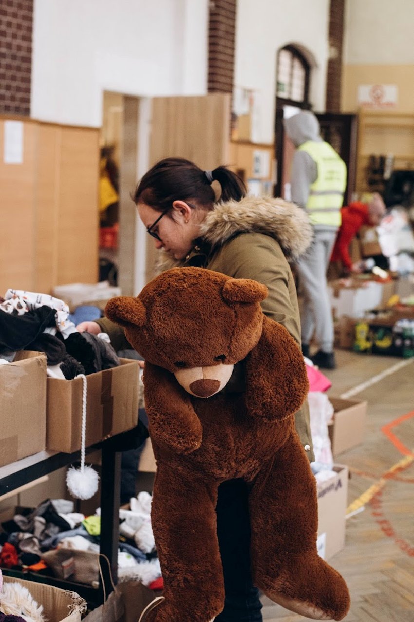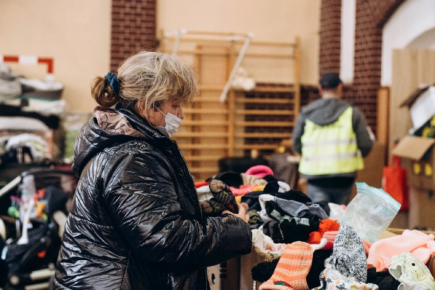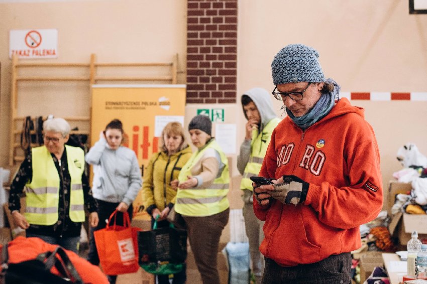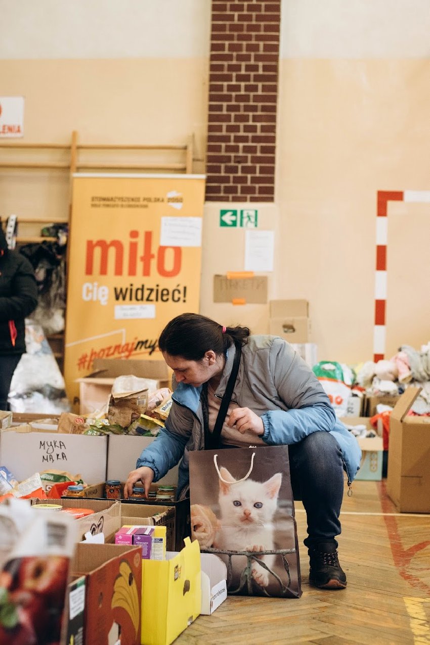 Młoda Ukrainka goszcząca u jednej z oleśnickich rodzin uwieczniła na fotografii to, co dzieje się w sali przy ul. Żeromskiego. To tam wydawane są dary dla uchodźców.