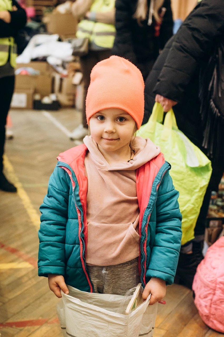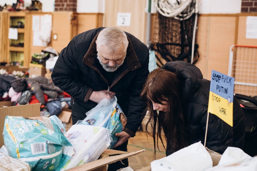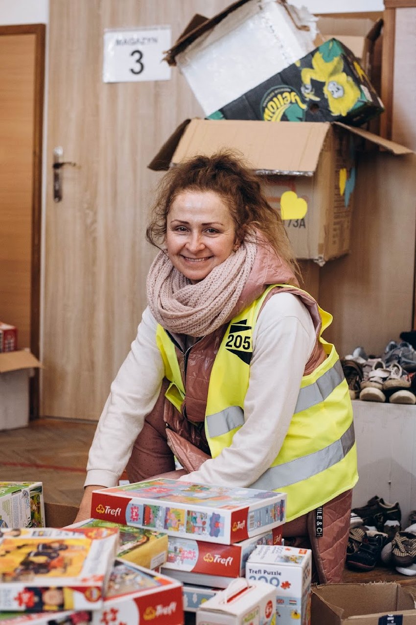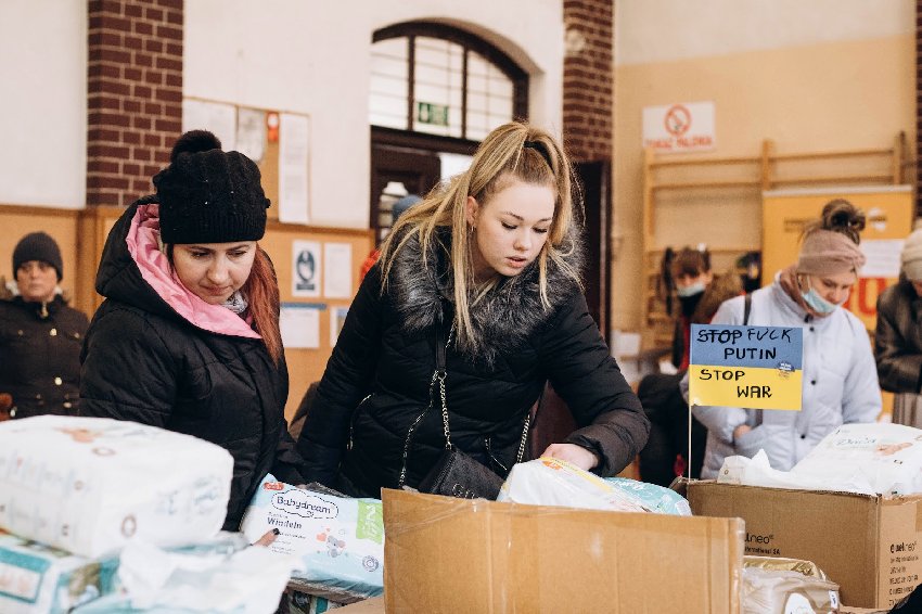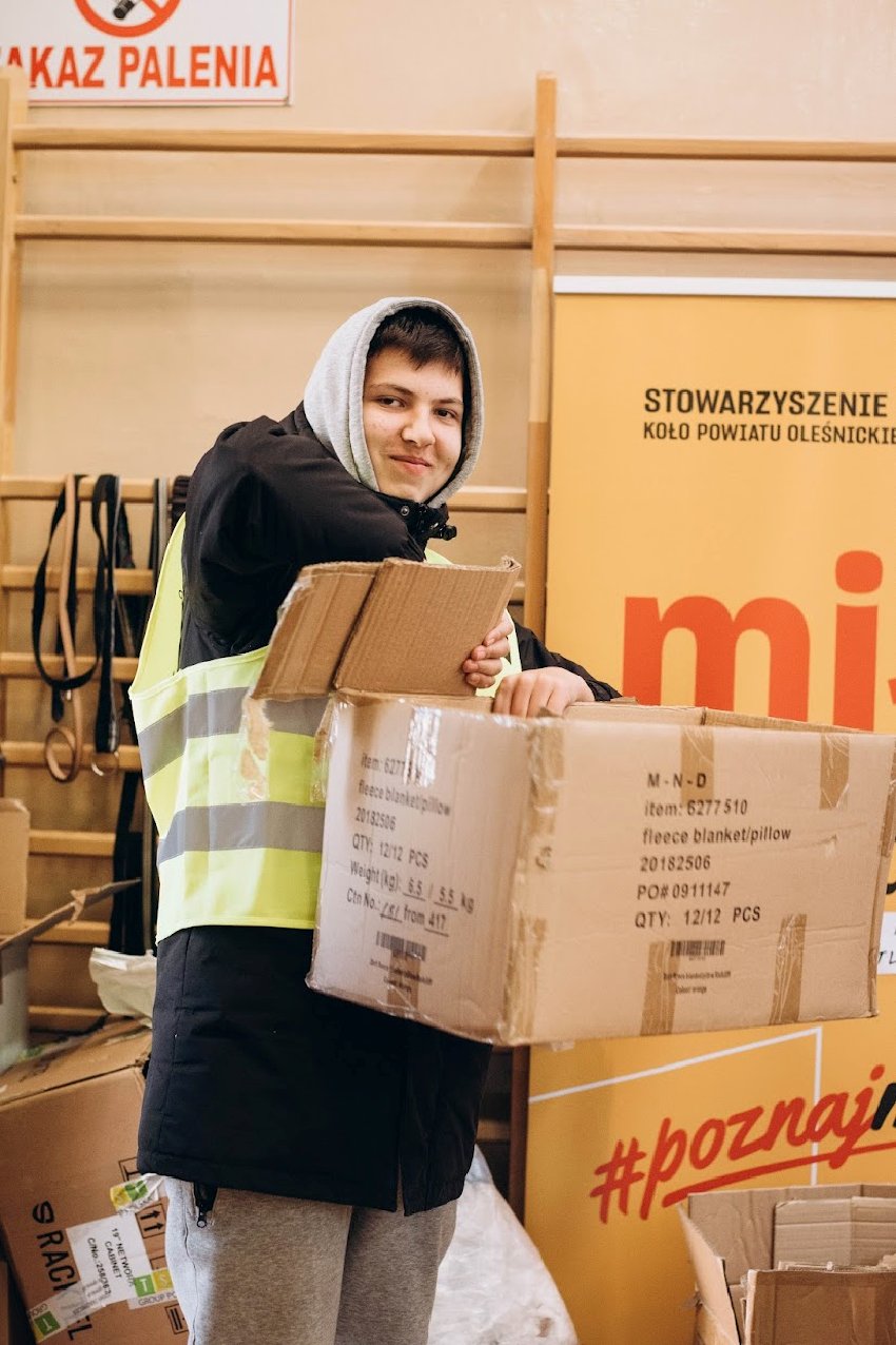 Młoda Ukrainka goszcząca u jednej z oleśnickich rodzin uwieczniła na fotografii to, co dzieje się w sali przy ul. Żeromskiego. To tam wydawane są dary dla uchodźców.