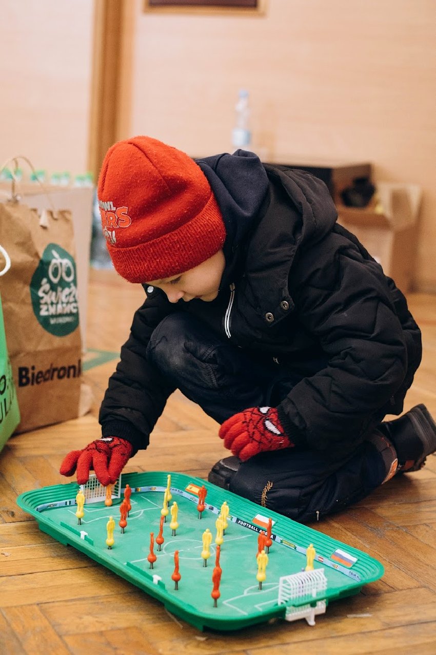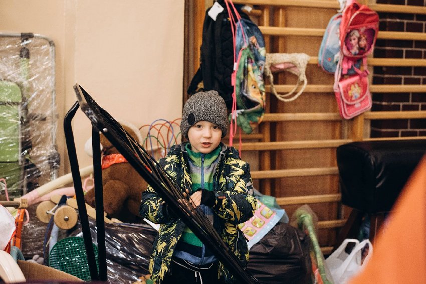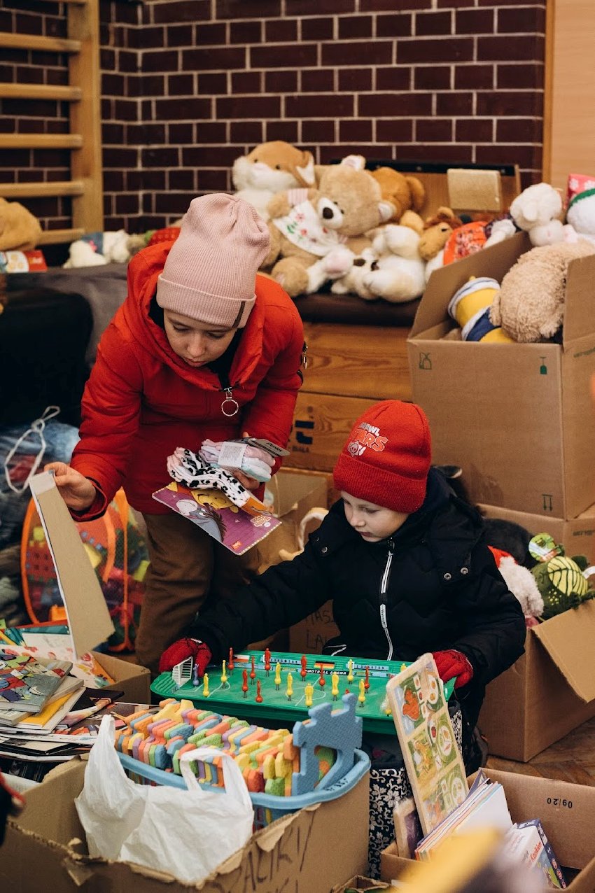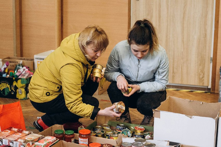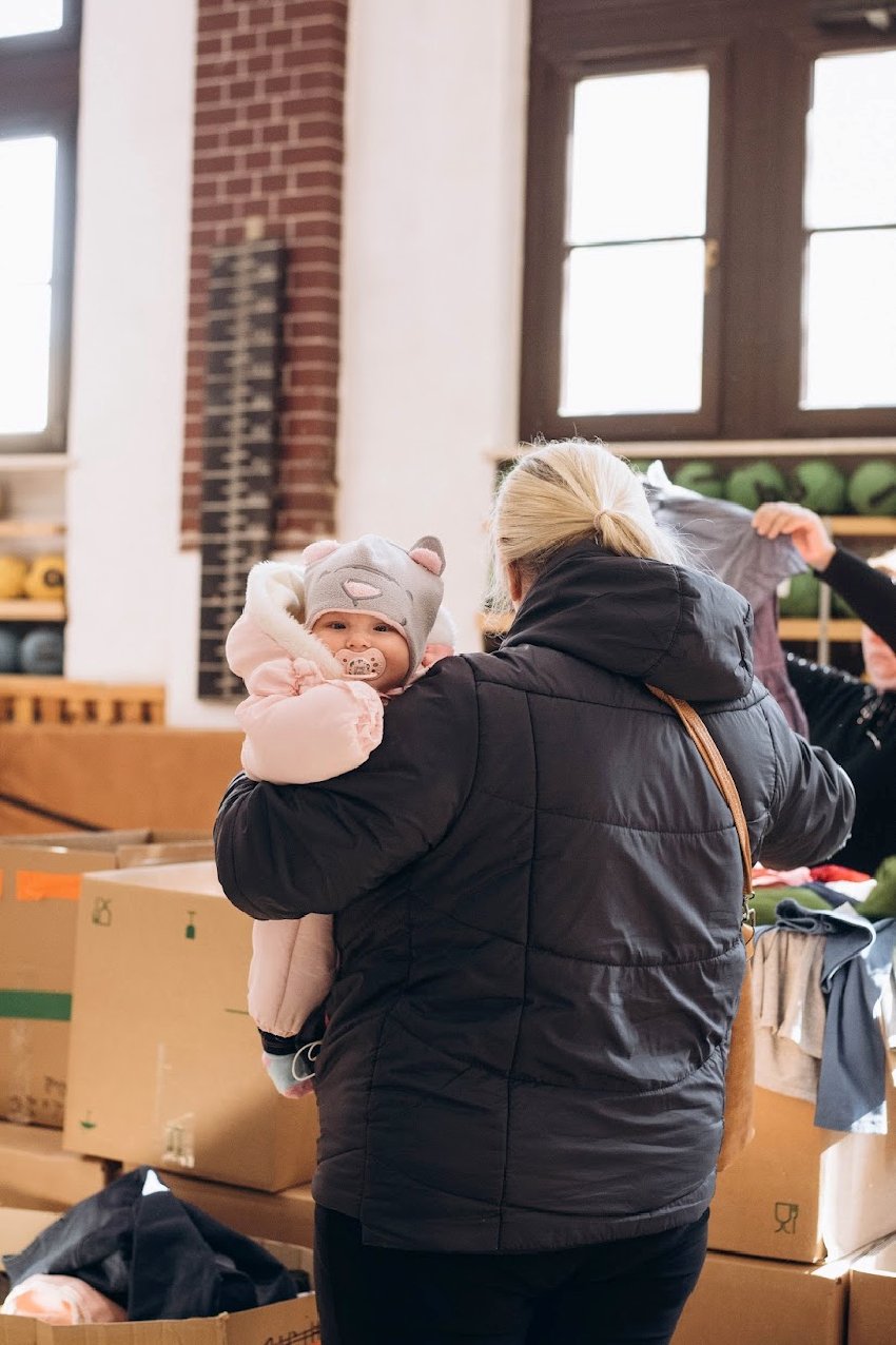 Młoda Ukrainka goszcząca u jednej z oleśnickich rodzin uwieczniła na fotografii to, co dzieje się w sali przy ul. Żeromskiego. To tam wydawane są dary dla uchodźców.