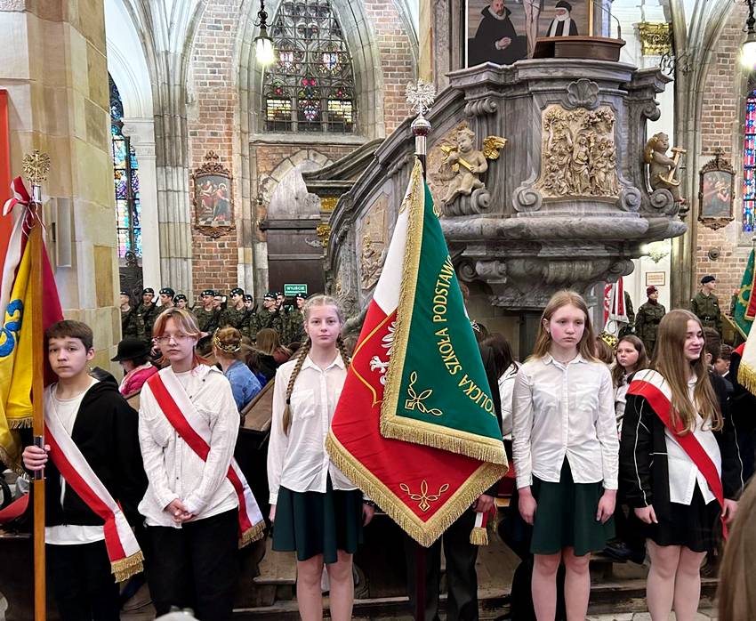– O godz. 8:00 wyruszyliśmy wspólnie z pocztami sztandarowymi w przemarszu do Katedry Wrocławskiej, pod którą odbyła się uroczysta salwa armatnia oraz wspólne odśpiewanie „Roty” – relacjonuje szkoła. – Następnie udaliśmy się na mszę świętą, której przewodniczył ksiądz biskup Jacek Kiciński. Podczas liturgii nasi uczniowie dostąpili zaszczytu złożenia darów ofiarnych, a poczet sztandarowy pełnił wspólnie z innymi szkołami wartę honorową. Mszę w intencji naszej ojczyzny uświetnił występ chóru katedralnego.