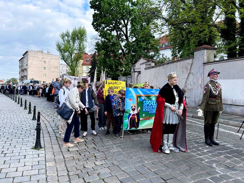 Uczniowie Katolickiej Szkoły Podstawowej na uroczystościach 1000-lecia koronacji Bolesława Chrobrego
