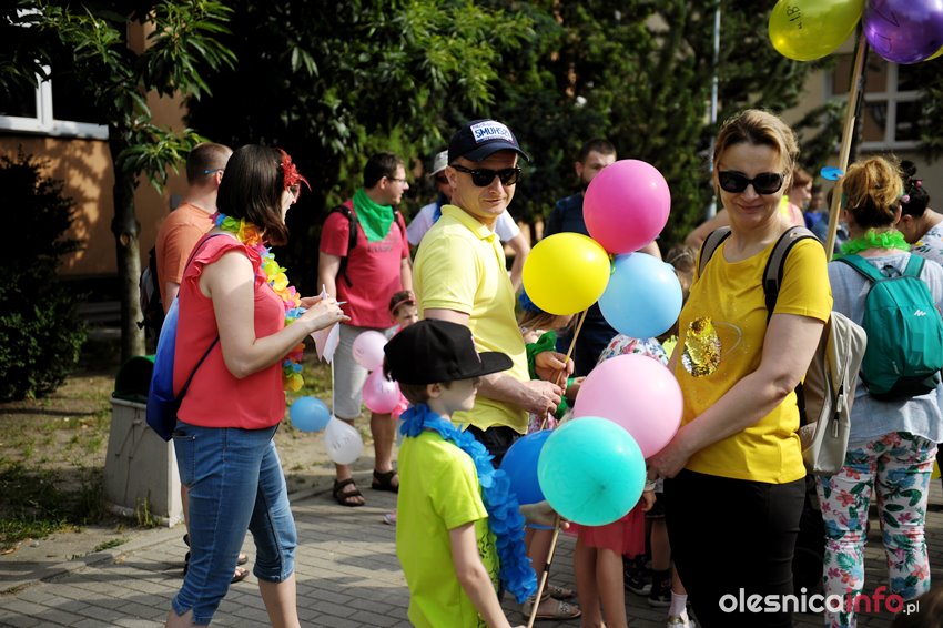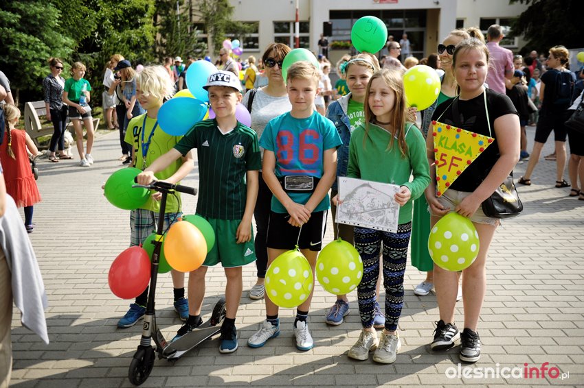 Uczniowie poszli w trasę wraz z rodzicami i nauczycielami. Były kolorowe przebrania i napisy. Na starcie nie zabrakło uczestników pierwszych edycji Rajdu Szóstki, którzy teraz ruszyli w drogę wraz ze swoimi dziećmi.