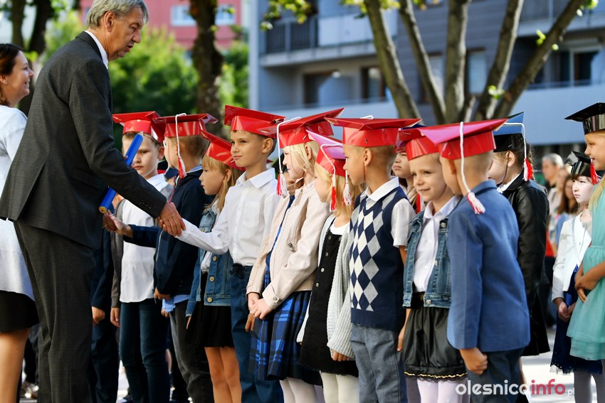 Młodsi uczniowie oleśnickiej czwórki rozpoczęcie nowego roku szkolnego mają już za sobą. Uroczystość odbyła się na placu apelowym, gdzie dyrektor szkoły Kazimierz Ubowski witał uczniów i życzył im, by nowy rok przyniósł satysfakcję i zadowolenie. Pierwszoklasiści złożyli ślubowanie, a grupa taneczna dała pierwszy w tym roku popis.