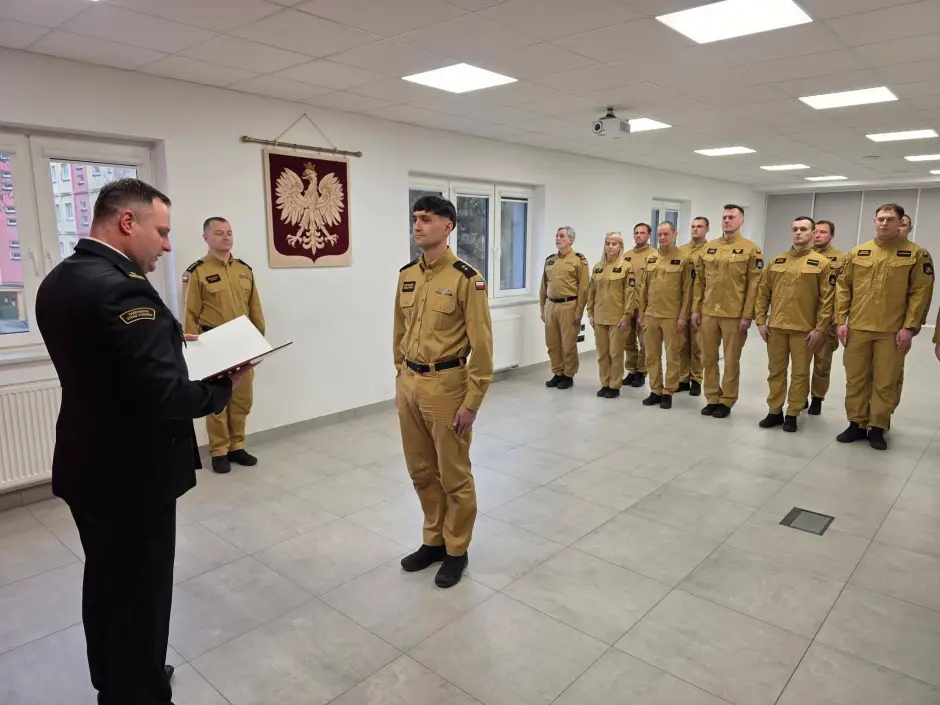 W siedzibie JRG Oleśnica odbyła się uroczysta zbiórka, podczas której zastępca komendanta powiatowego PSP w Oleśnicy mł. bryg. Rafał Zadka dokonał wręczenia awansu na stanowisku służbowym mł. kpt. Bartłomiejowi Kruszyńskiemu, obejmującemu funkcję kierownika sekcji w Wydziale Operacyjnym oraz przyjął ślubowanie nowo zatrudnionego funkcjonariusza str. Mateusza Gmerka.