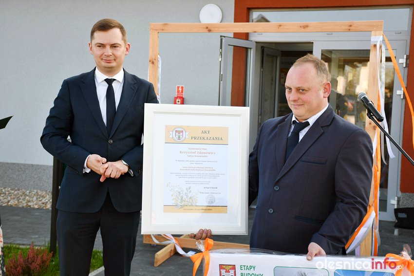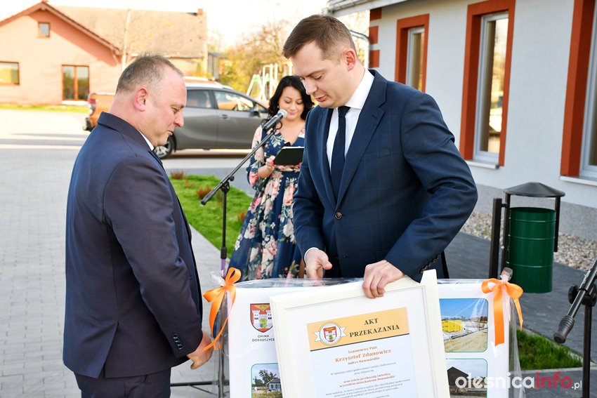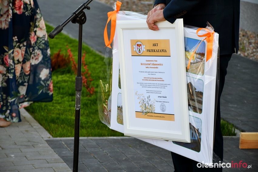 Akt przekazania świetlicy wójt Artur Ciosek wręczył sołtysowi wsi Krzysztofowi Zdanowiczowi, który podziękował za zrealizowaną inwestycję w imieniu mieszkańców Nowosiedlic. Później przystąpiono do uroczystego przecięcia wstęgi, a gości zaproszono na poczęstunek.