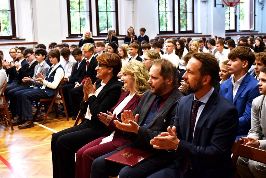 W uroczystości wzięli udział dyrektor Marzena Helińska, wicedyrektor Tomasz Banaszak oraz zaproszeni goście: profesor Kamil Staniec – PROREKTOR DS. KSZTAŁCENIA Politechniki Wrocławskiej – absolwent Liceum i Kamila Zawisza – dyrektor Centrum Rekrutacji Politechniki Wrocławskiej.