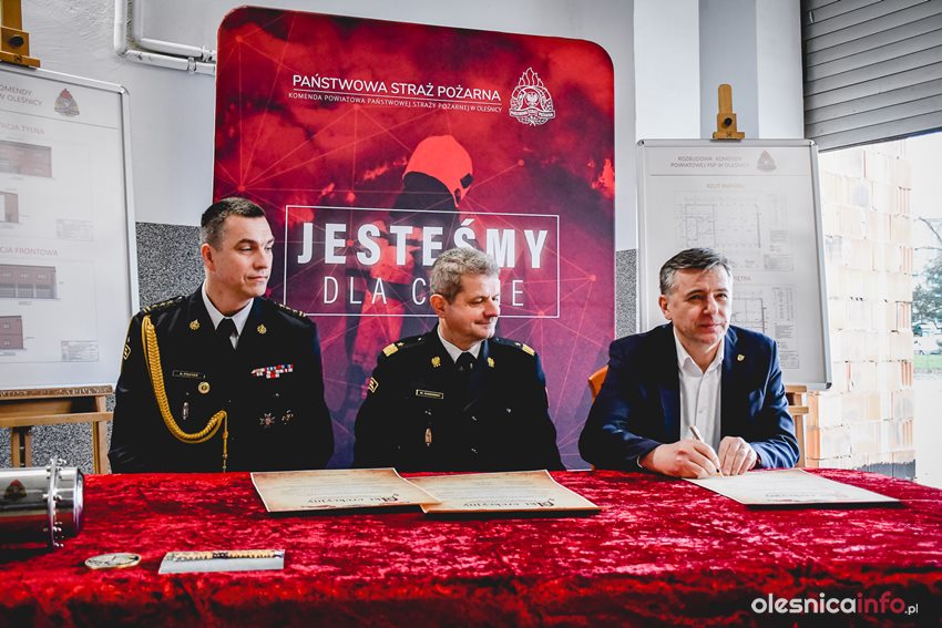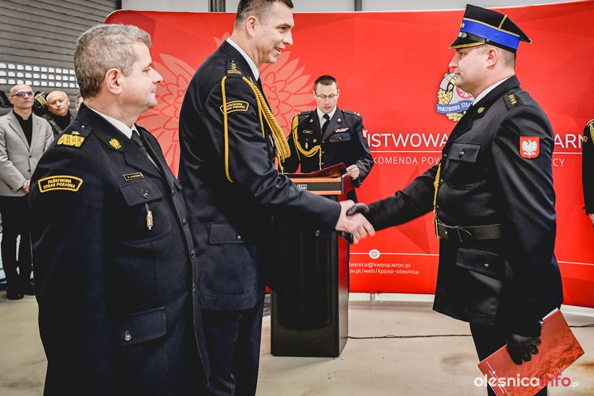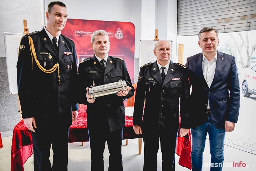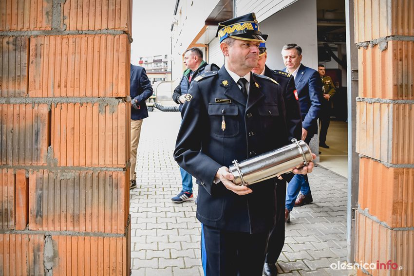 Dzisiaj w Komendzie Powiatowej Państwowej Straży Pożarnej w Oleśnicy odbyła się uroczystość wmurowania kamienia węgielnego pod powstającą, nową komendę. Uroczystość była też okazją do wręczenia awansów dla strażaków.