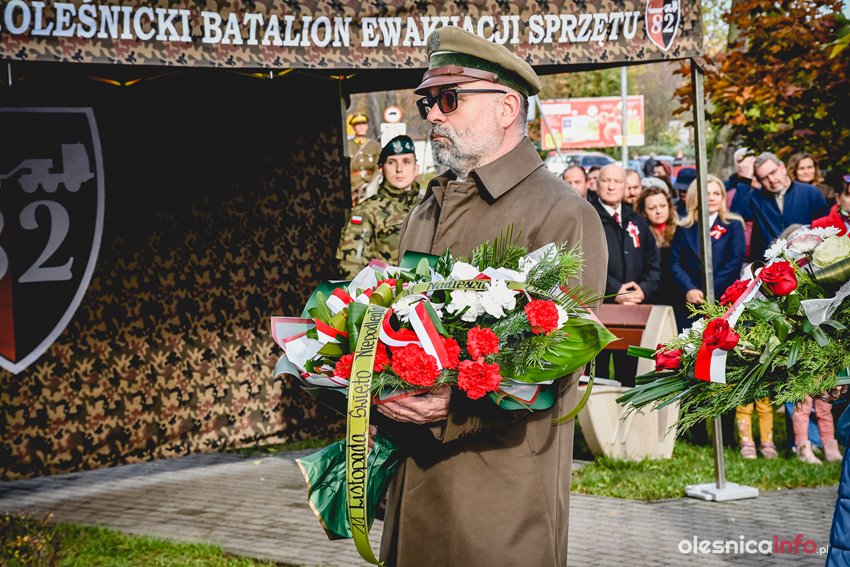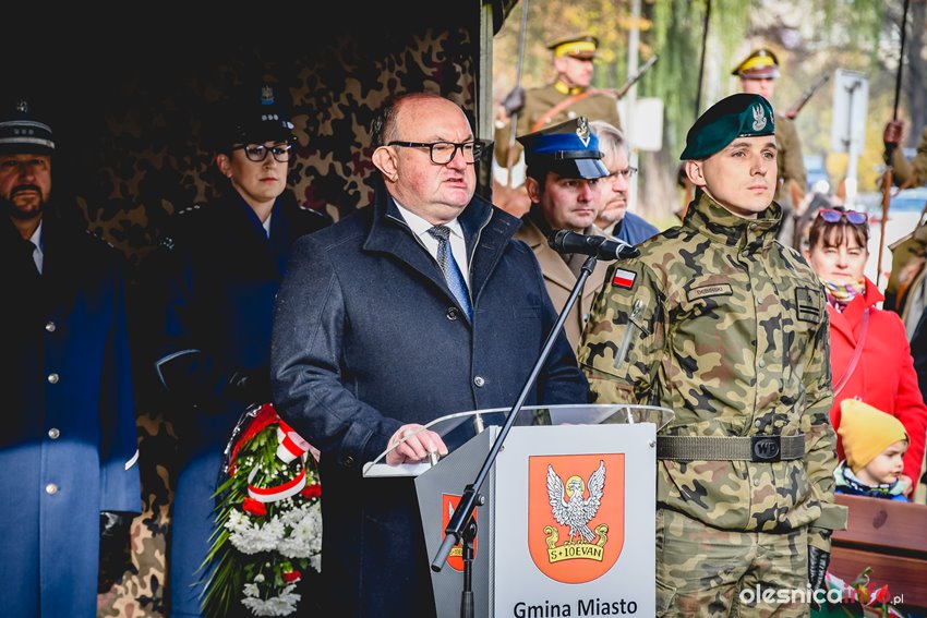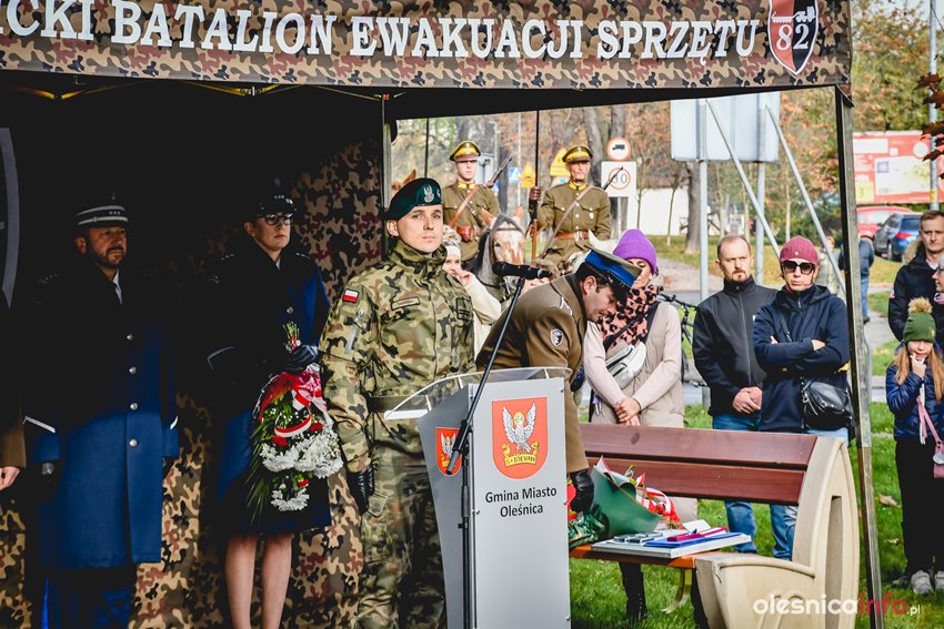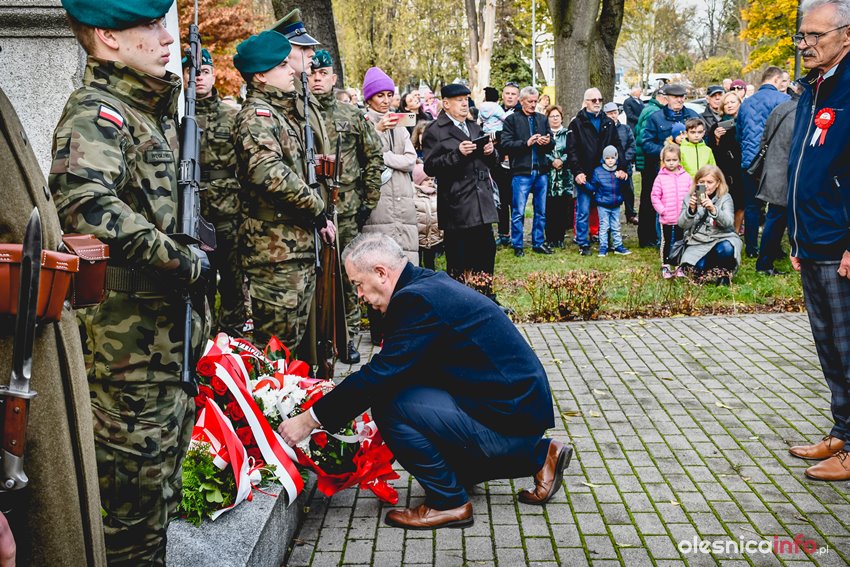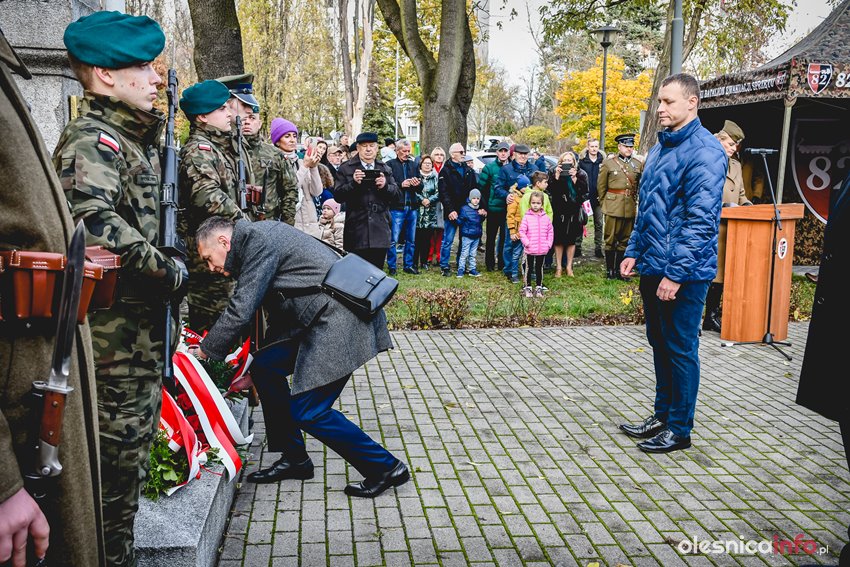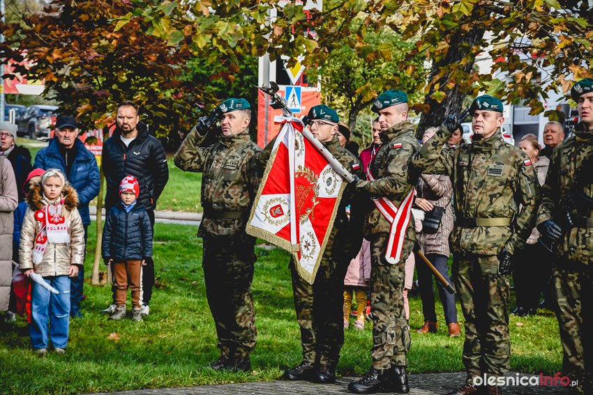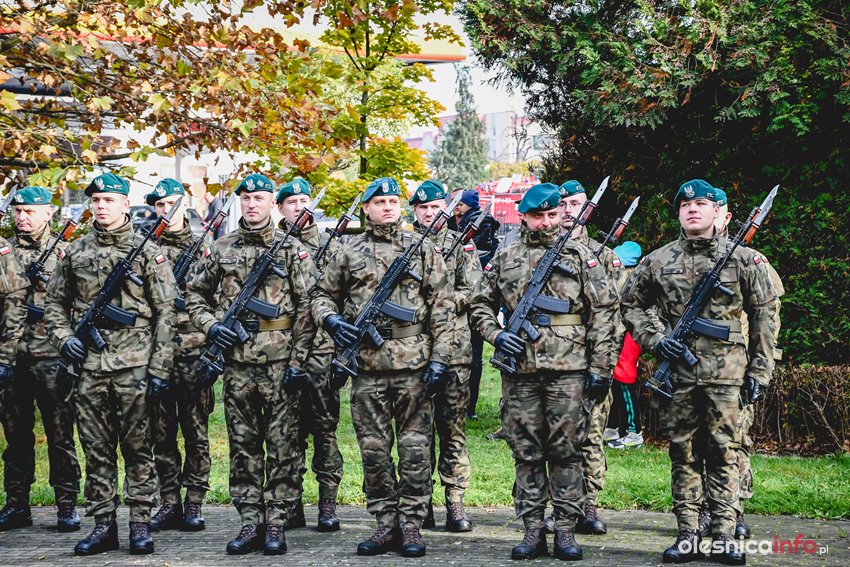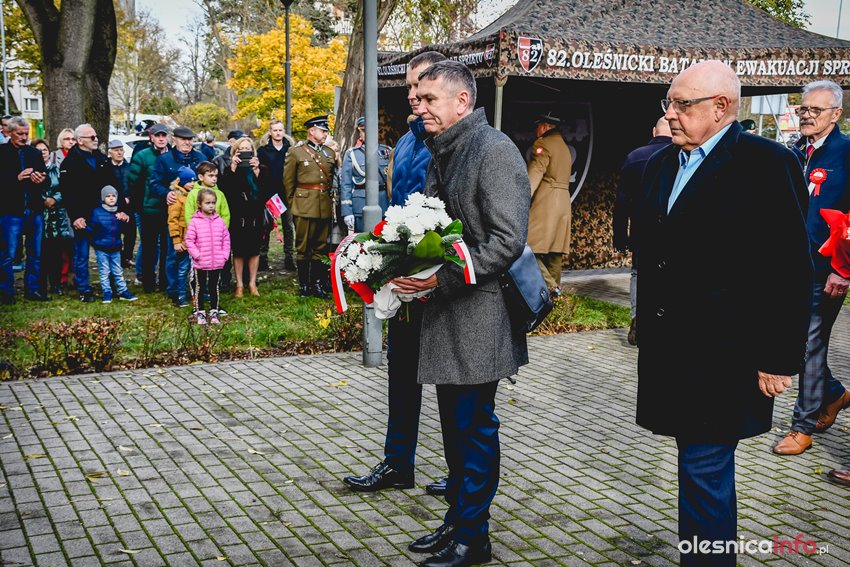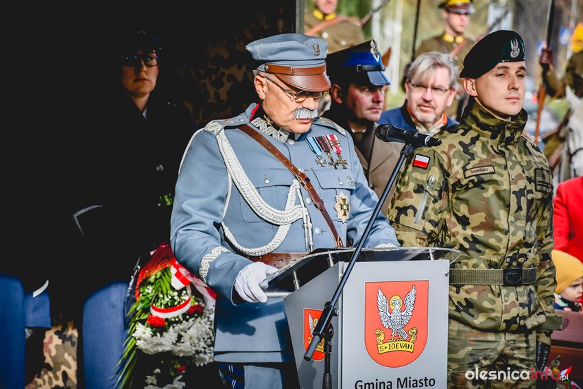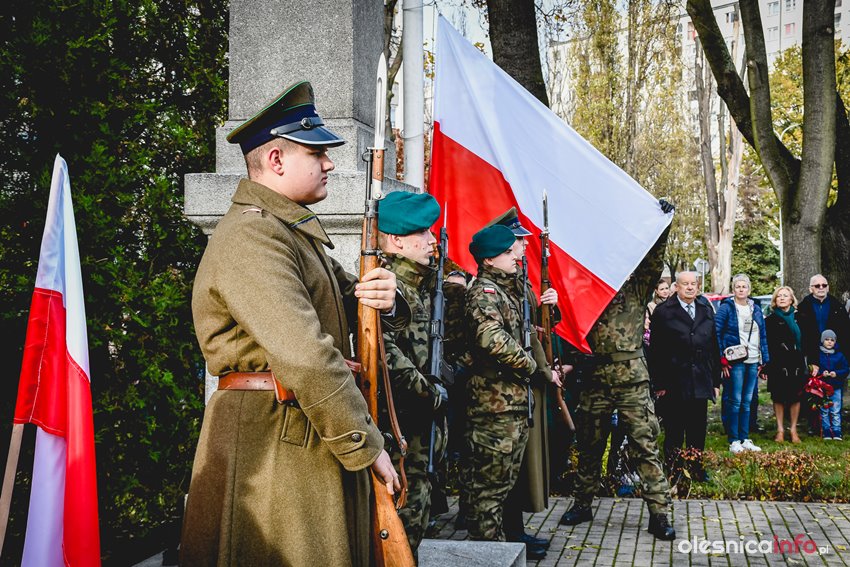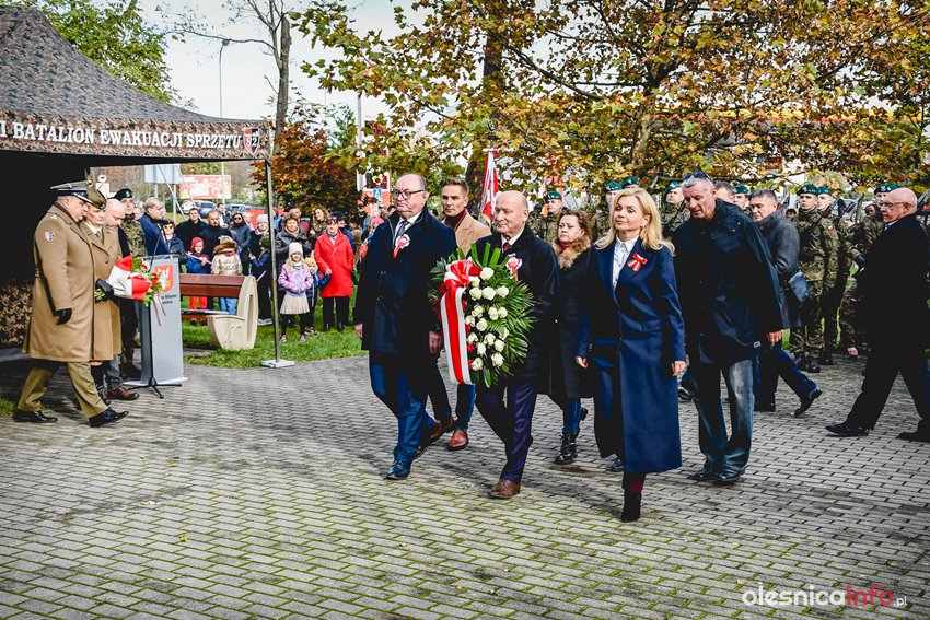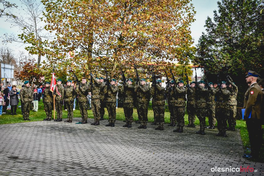 Dzisiaj w południe na skwerze Kombatantów w Oleśnicy odbyła się uroczystość poświęcona 105. rocznicy odzyskania przez Polskę niepodległości. O oprawę uroczystości zadbał oleśnicki garnizon, a okolicznościowe przemówienie wygłosił burmistrz Jan Bronś.