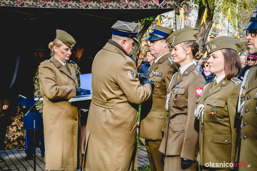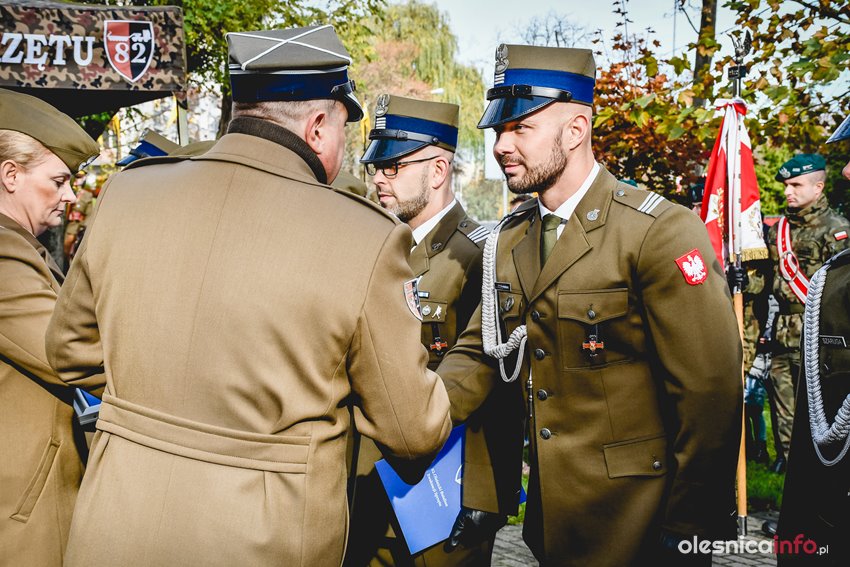 Uroczystość była też okazją do wręczenia awansów na wyższe stopnie zawodowe żołnierzom z oleśnickiego garnizonu. Później delegacje złożyły kwiaty pod pomnikiem Kombatantów. Byli wśród nich samorządowcy, przedstawiciele instytucji i służb, szkół oraz organizacji. Kwiaty złożył także poseł Arkadiusz Sikora.
