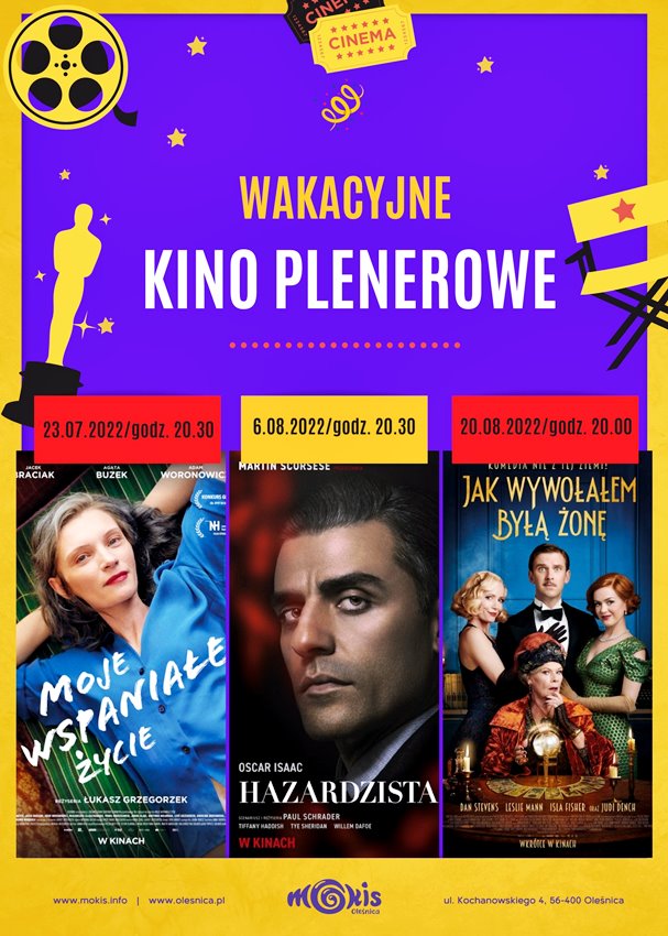 Miejski Ośrodek Kultury i Sztuki w Oleśnicy zaprasza na seanse filmowe w ramach wakacyjnego kina plenerowego, które będą wyświetlone w amfiteatrze nad stawami.