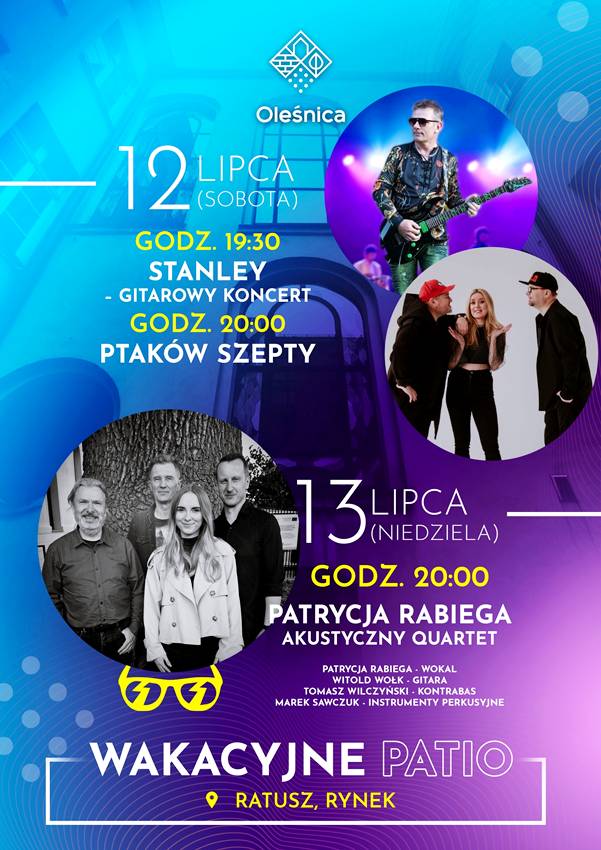 Choć pogoda ostatnio płata nam figle, organizatorzy nie dają za wygraną – już w ten weekend zapraszają wszystkich miłośników dobrej muzyki na Wakacyjne Patio w Ratuszu!
