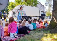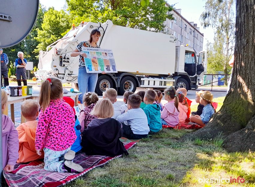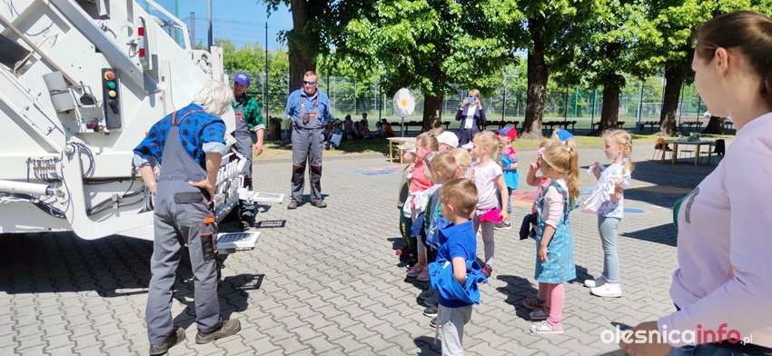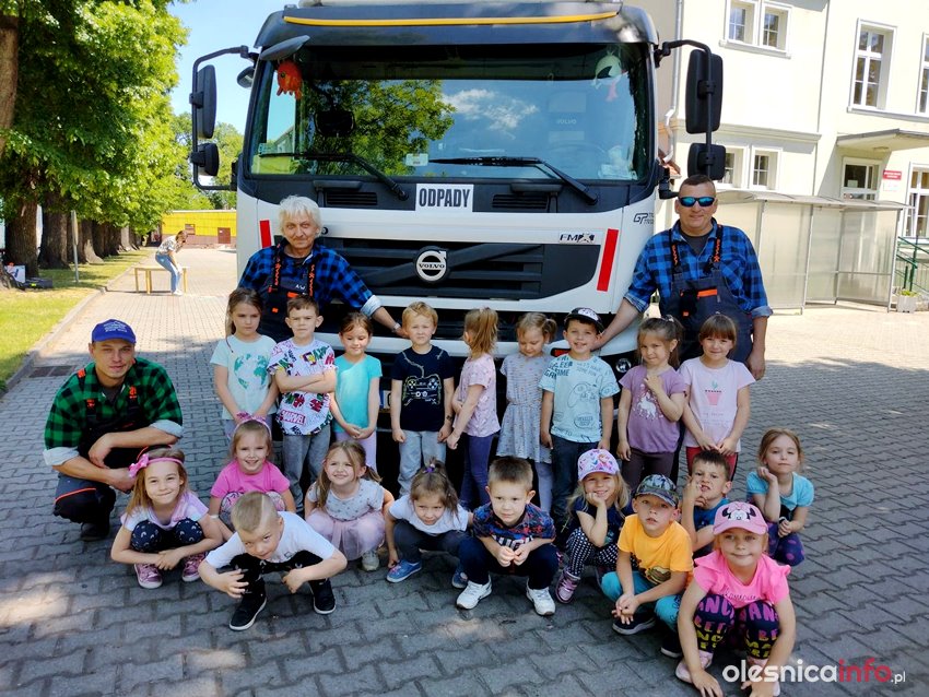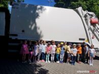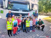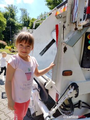 Pani Kornelia uświadamiała przedszkolaki jakim dużym zagrożeniem dla zwierząt są foliowe torby. Na zakończenie dzieci z ogromną radością oglądały śmieciarkę, chętne dzieci mogły usiąść w kabinie kierowcy oraz stanąć na stopniu dla pracowników zbierających odpady. Jesteśmy przekonani, że zdobyta praktyczna wiedza pomoże nabrać pozytywnych postaw zmierzających do ochrony środowiska.