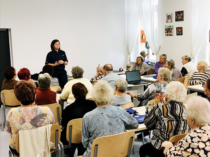 Anna Górna z Powiatowej Stacji Sanitarno-Epidemiologicznej w Oleśnicy przedstawiła tematykę profilaktyki zdrowotnej związanej z obecną porą roku – jesienią. Dominika Myszakowska-Kaczała z portalu dlakonsumenta.pl wprowadziła seniorów w temat praw konsumenckich. – Opowiedziała o wszelakich kruczkach prawnych, którymi jesteśmy zaskakiwani w umowach przez nas podpisywanych – relacjonują seniorzy. – Ostatnim mówcą była Aleksandra Pieprzycka, oficer prasowy Komendy Powiatowej Policji w Oleśnicy. Poruszyła ona tematykę bezpieczeństwa seniorów, a zwłaszcza opowiedziała o metodzie działania oszustów. Warsztaty profilaktyczne cieszyły się ogromnym zainteresowaniem ze strony naszych seniorów.