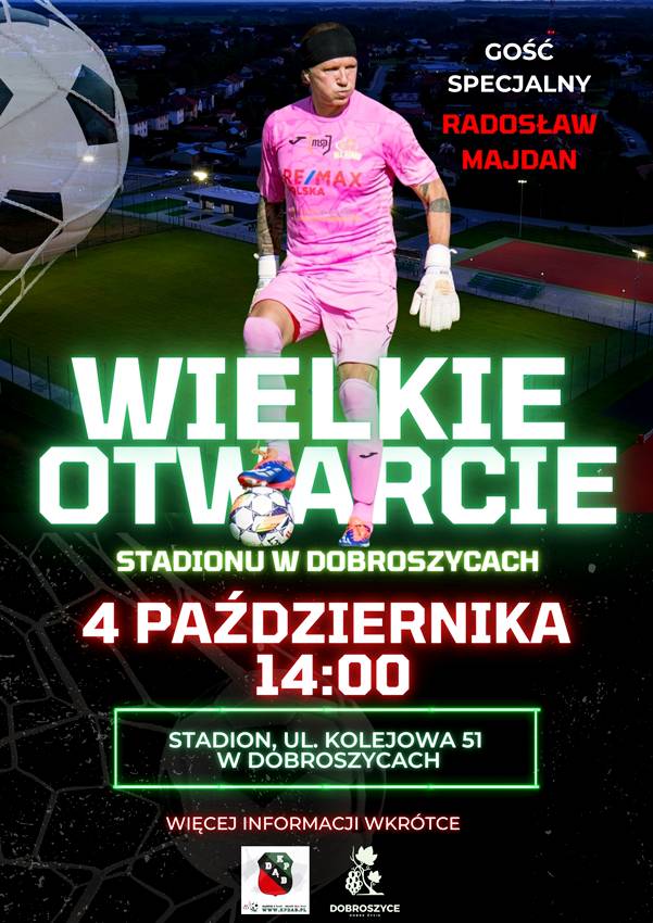 Na dobroszycki stadion zawita Radosław Majdan – były bramkarz Reprezentacji Polski, znany komentator i ekspert sportowy, osobowość medialna, a także działacz społeczny. Jego obecność to nie lada gratka dla fanów piłki nożnej i nie tylko. Będzie okazja do spotkania, wspólnych zdjęć i rozmów.