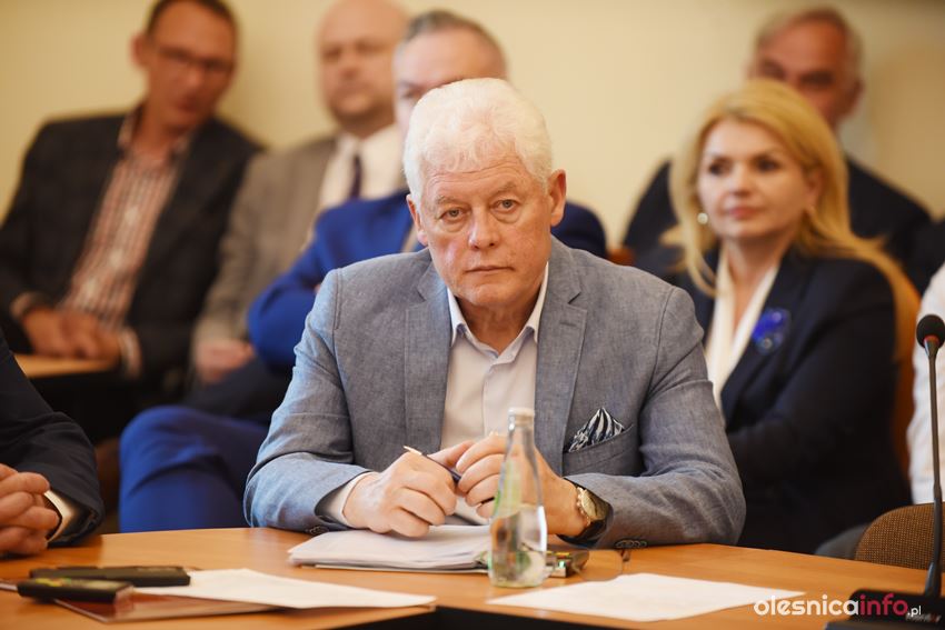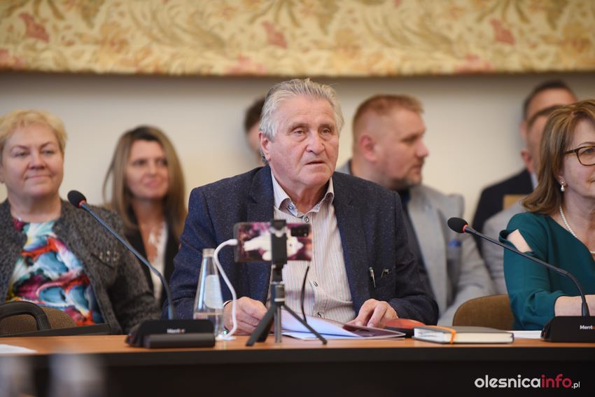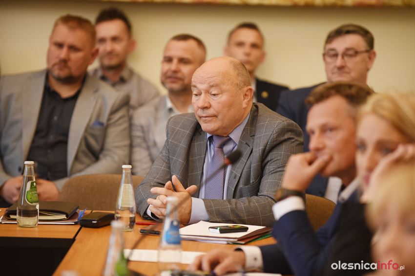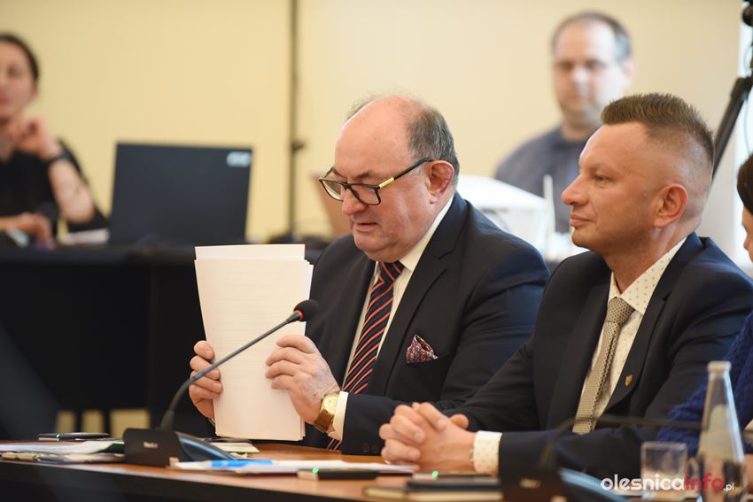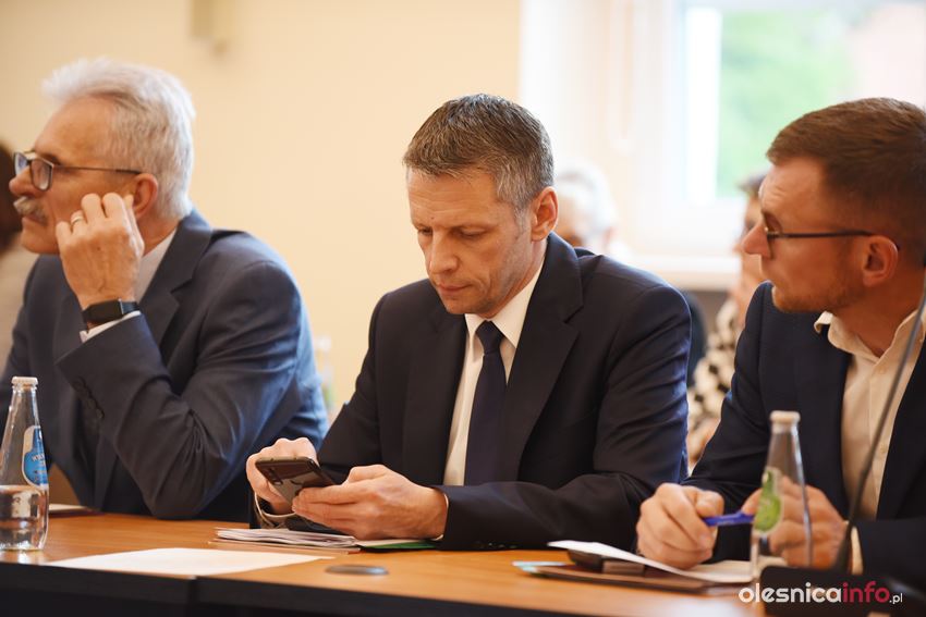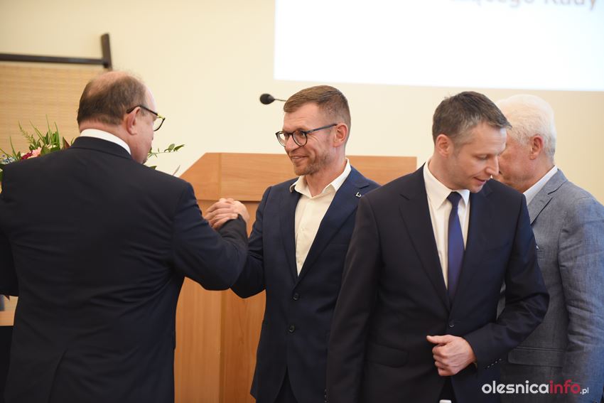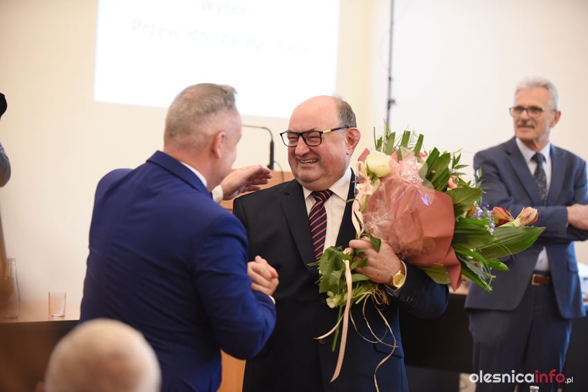 Obrady prowadził radny-senior Zygmunt Skiba. W pierwszej części sesji nowo wybrani radni odebrali zaświadczenia o wyborze, a także złożyli ślubowanie. W głosowaniu zdecydowali też o wyborze przewodniczącego Rady Powiatu Oleśnickiego. Jedynym kandydatem do objęcia tej funkcji był Jan Bronś. Samorządowiec uzyskał poparcie 22 radnych (jedna osoba wstrzymała się od głosu). Już po podjęciu uchwały Bronś przejął prowadzenie obrad, podczas których wybrano również wiceprzewodniczących rady. Zostali nimi: Paweł Olszański i Czesław Teleszko.