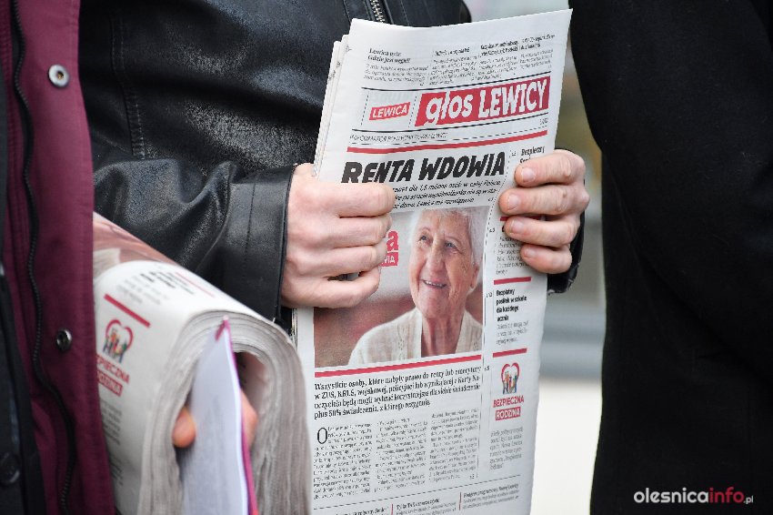 Co proponuje Lewica, której działacze jeżdżą w tym tygodniu po Dolnym Śląsku i spotykają się z mieszkańcami? – Proponujemy, aby pozostała przy życiu osoba może zachować swoje świadczenie i powiększyć je o 50 procent renty rodzinnej po zmarłym małżonku lub pobierać rentę rodzinną po zmarłym małżonku i 50 procent swojego świadczenia – mówił w Oleśnicy wicemarszałek Sejmu Włodzimierz Czarzasty, któremu towarzyszyli posłanka Agnieszka Dziemianowicz-Bąk oraz wiceszef partii na Dolnym Śląsku Arkadiusz Sikora.