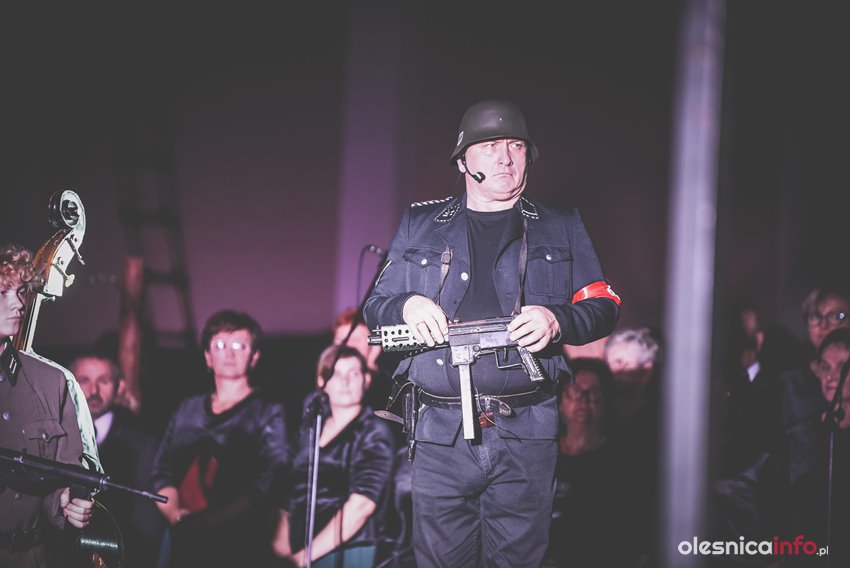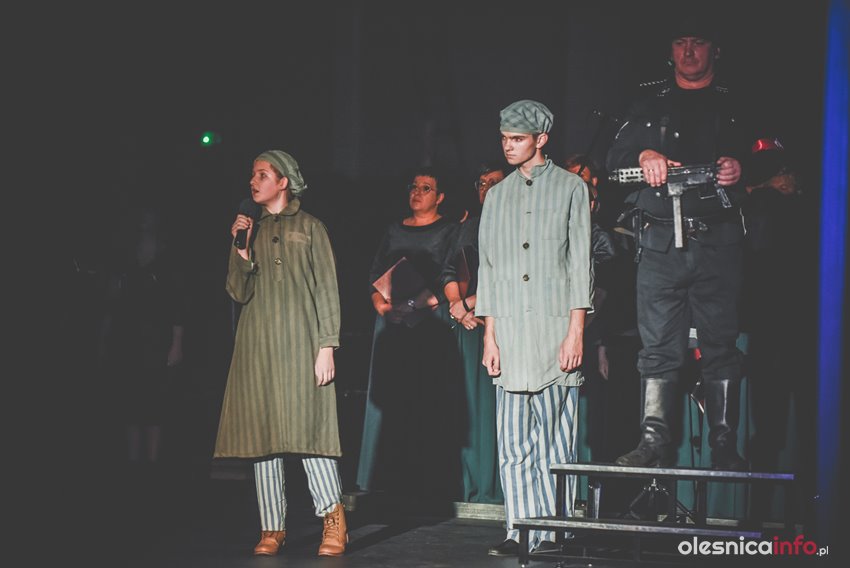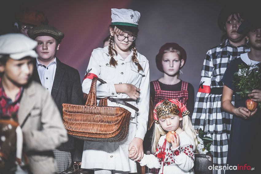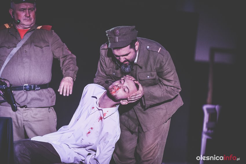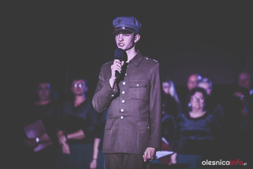 Obecni i byli uczniowie dyrektorki Szkoły Podstawowej Gminy Oleśnica Agnieszki Grondowy, ale też mieszkańcy gminy Oleśnica oraz gminny chór wystawili dziś w hali przy ul. Wileńskiej wyjątkowy spektakl inspirowany życiorysem Witolda Pileckiego. Przedstawienie, nagrodzone owacjami na stojąco, obejrzeli goście zaproszeni na uroczystość odsłonięcia pomnika rotmistrza.
