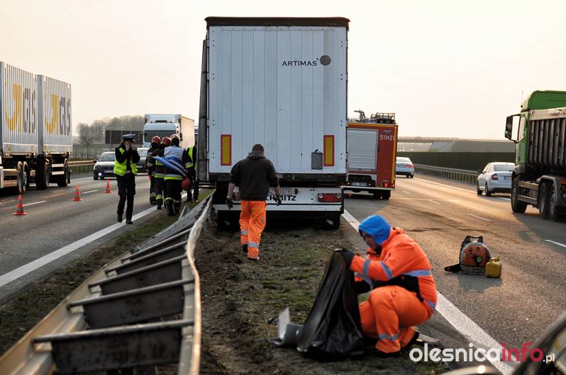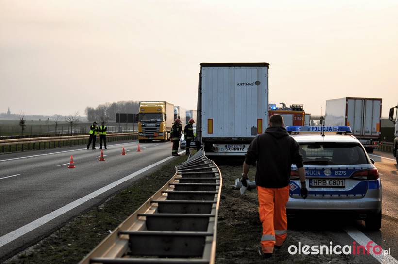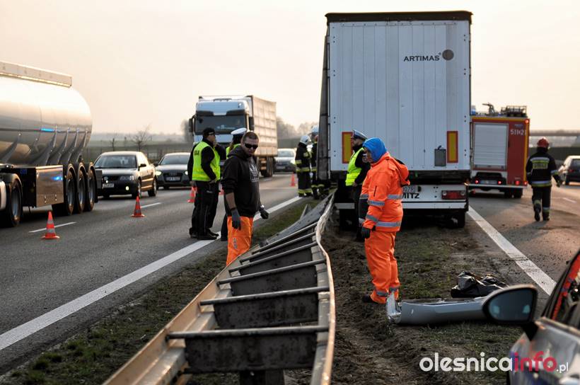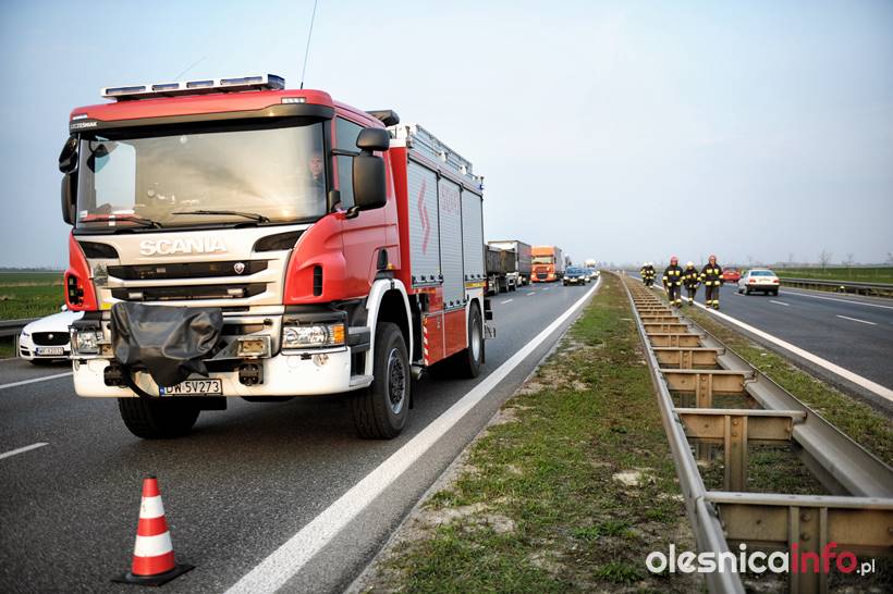 Na miejscu jest policja. Pracują trzy zastępy straży pożarnej, które usuwają ślady zdarzenia z jezdni. Pojawiły się też służby drogowe. Na drodze ekspresowej tworzą się korki samochodów w stronę Wrocławia. Na szczęście w wyniku tego zdarzenia nikt nie został poszkodowany.