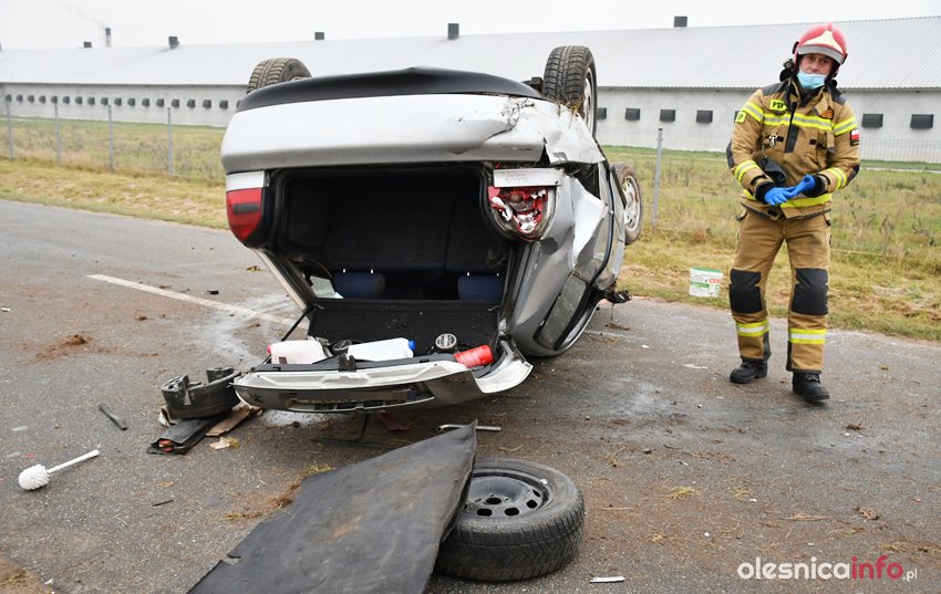 Na miejscu pracują służby, które zabezpieczają miejsce zdarzenia. Autem, które dachowało na środku drogi, podróżowała prawdopodobnie tylko jedna osoba i to ona została poszkodowana. Samochód mógł wpaść w poślizg. Droga od strony Miodar i Boguszyc jest zablokowana.