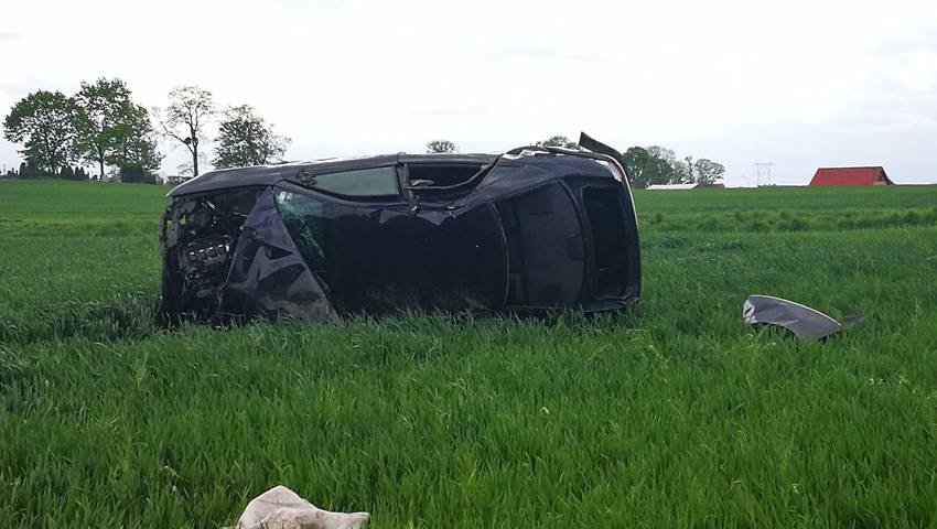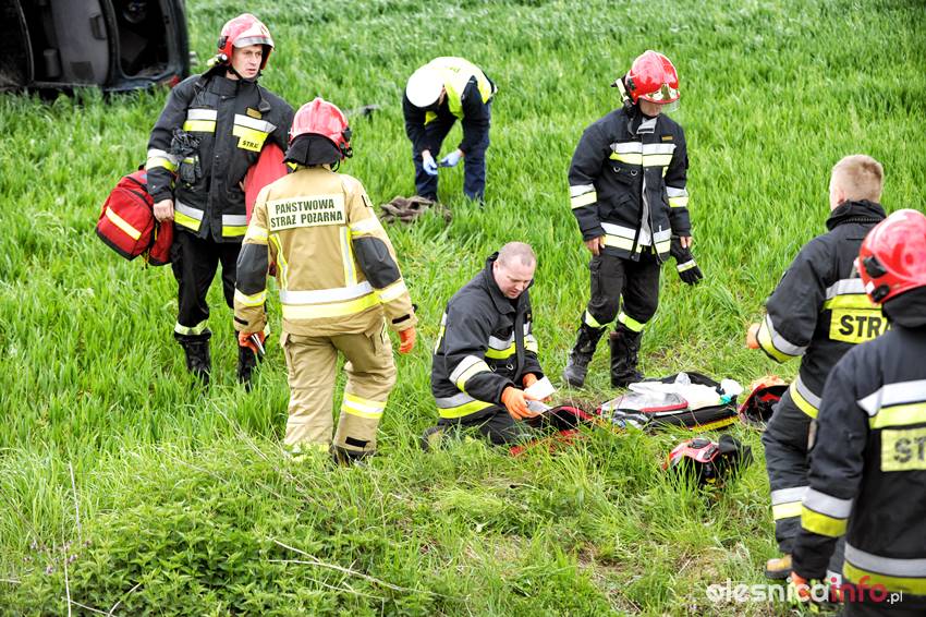 Wypadek pod Oleśnicą. Dachowała osobówka [ZDJĘCIA]