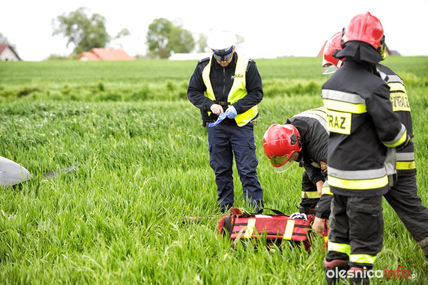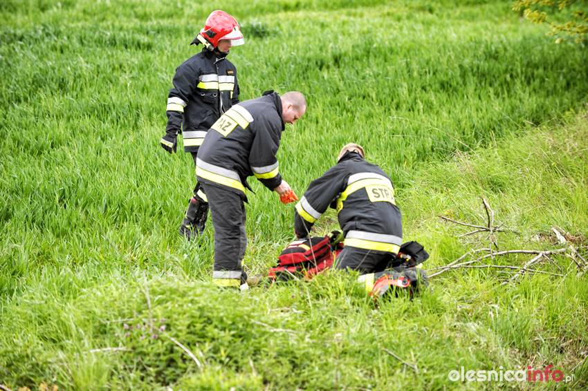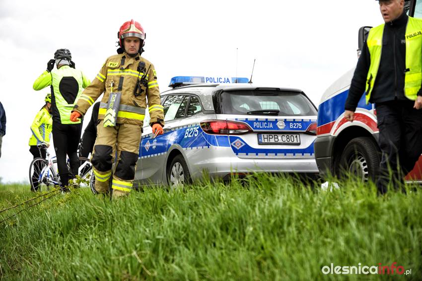 Ze wstępnych informacji wynika, że na drodze w kierunku Bystrego dachował samochód osobowy. Podróżowały nim dwie osoby. Samochód z oławską rejestracją wypadł z drogi. Pierwszej pomocy udzielili poszkodowanym rowerzyści z Oleśnicy. Teraz przejęli ich ratownicy z oleśnickiego pogotowia.