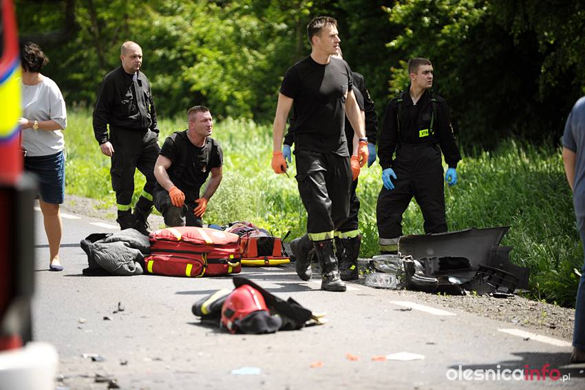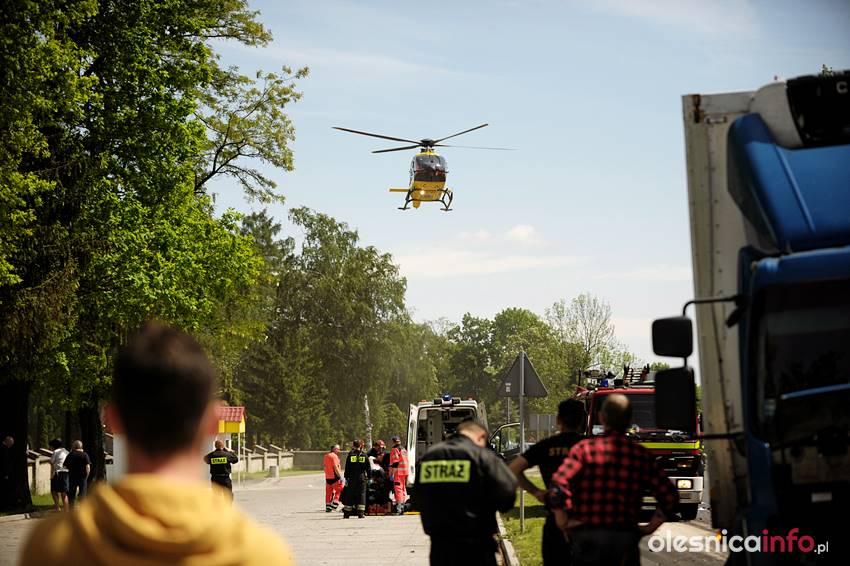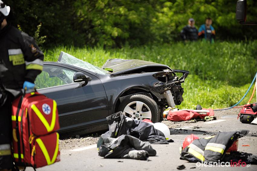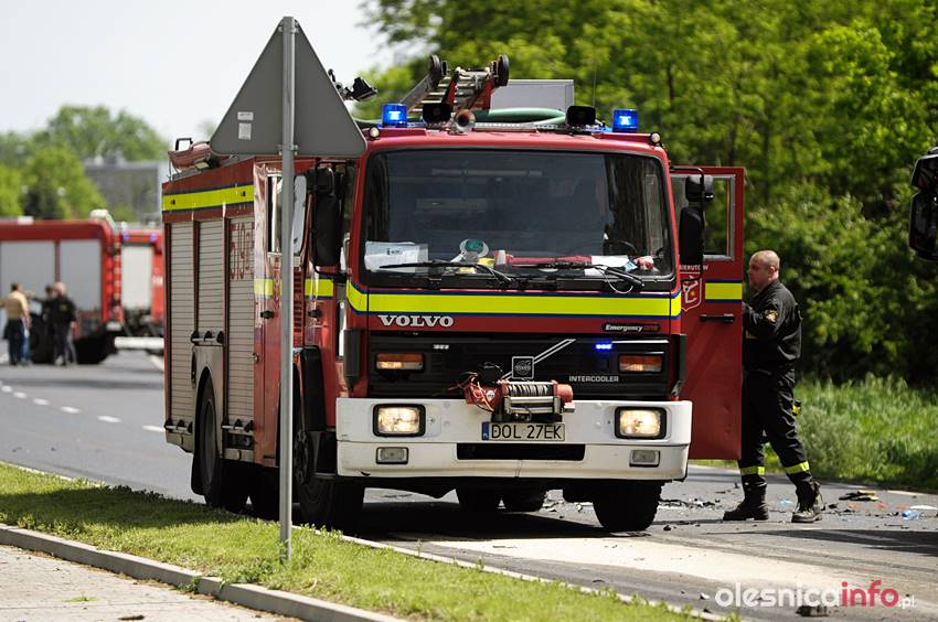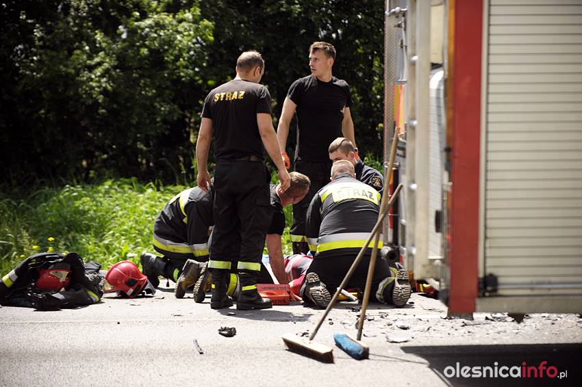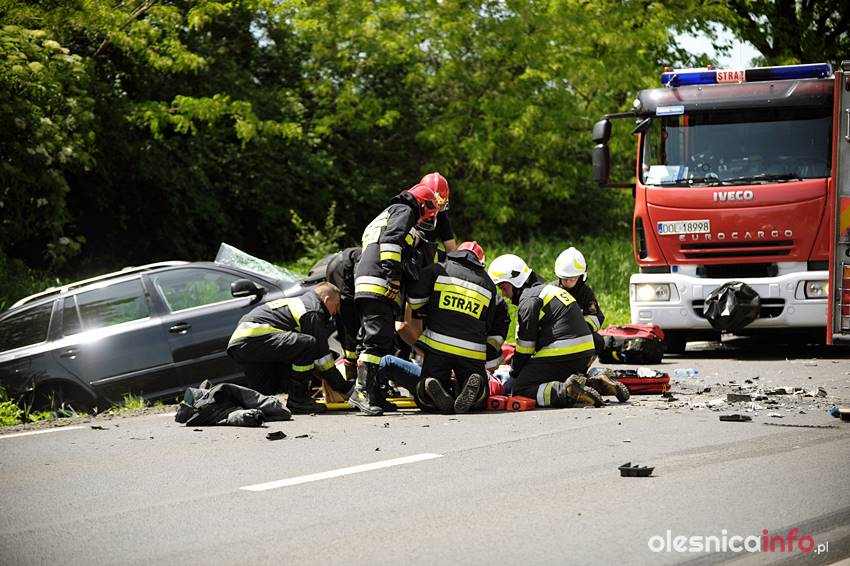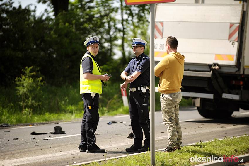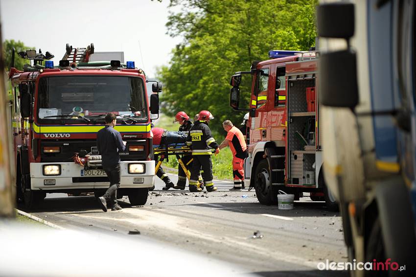 Jak informuje Aleksandra Pieprzycka z Komendy Powiatowej Policji w Oleśnicy Lotnicze Pogotowie Ratunkowe, które przyleciało na miejsce z Ostrowa Wielkopolskiego, zabrało 48-letniego kierowcę osobówki, który był w najcięższym stanie. Do szpitala trafiła także pasażerka tego samochodu przewieziona przez karetkę pogotowia ratunkowego. Bez obrażeń wyszedł z wypadku kierowca ciężarówki. Droga jest zablokowana.