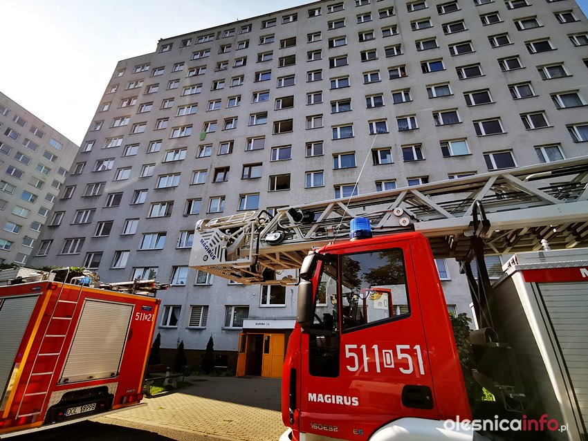 Zagrożenie pożarem w dziesięciopiętrowcu przy ulicy Klonowej