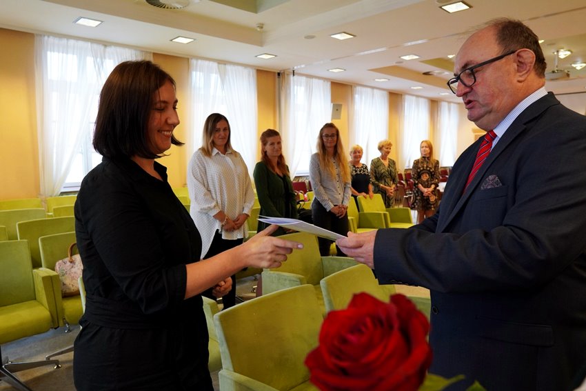 Burmistrz Jan Bronś wręczył akty nadania stopnia awansu zawodowego nauczyciela mianowanego pięciu nauczycielom oleśnickich szkół podstawowych.
